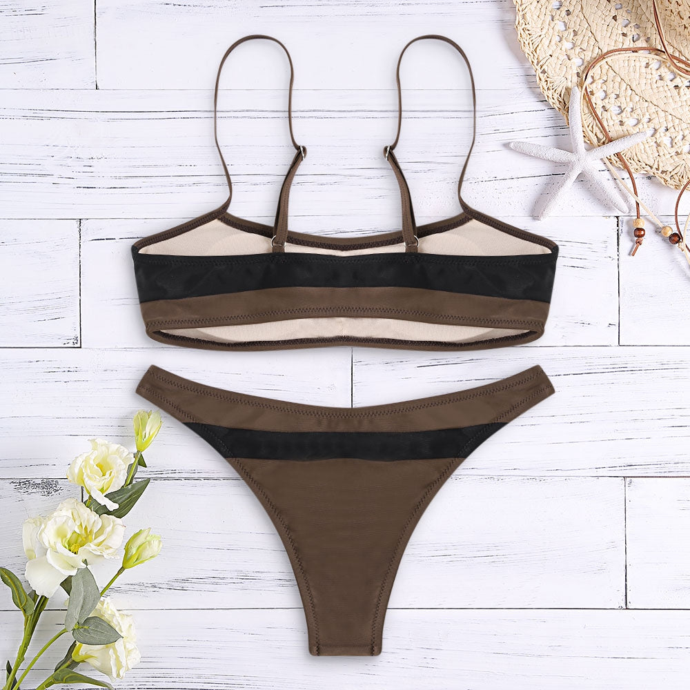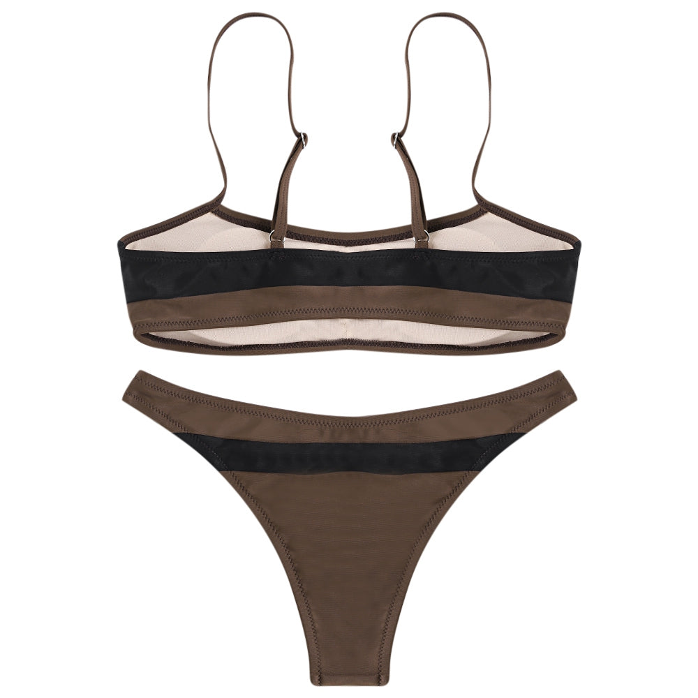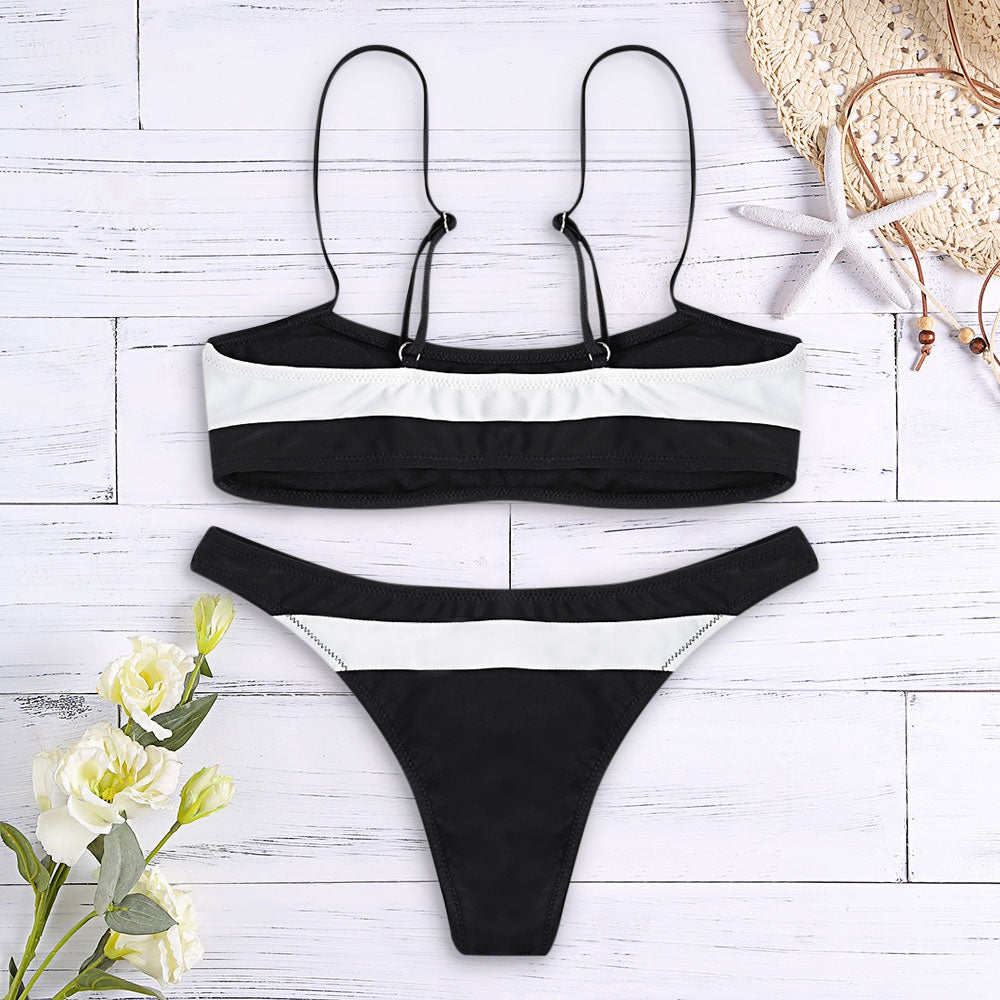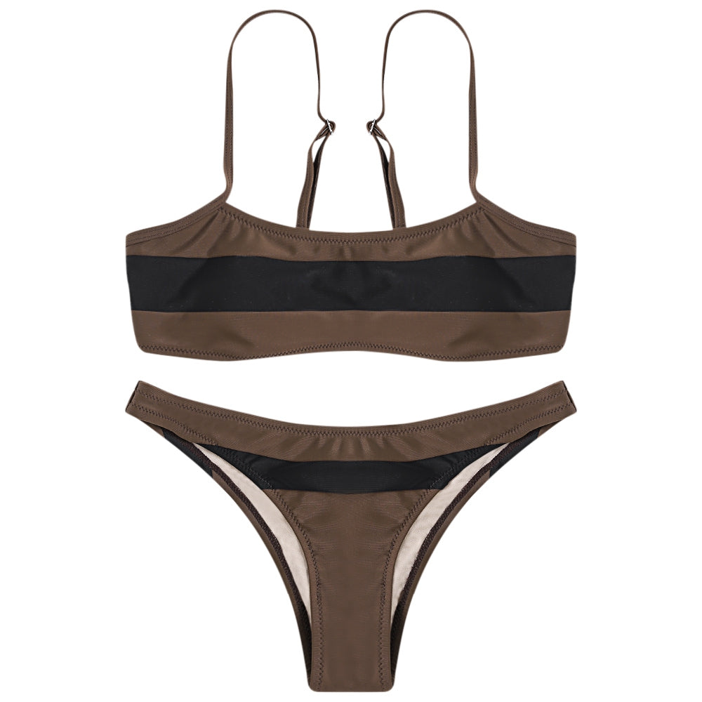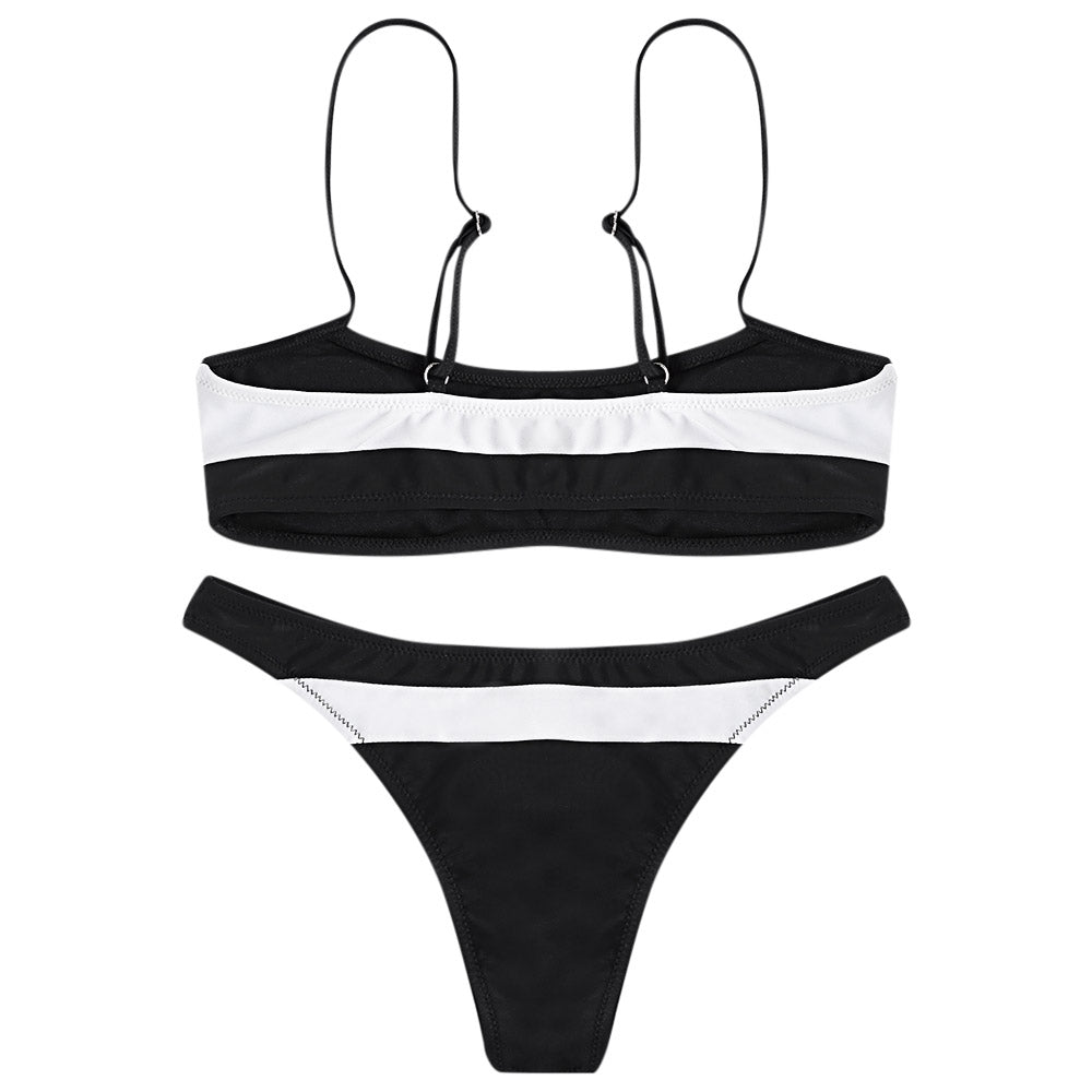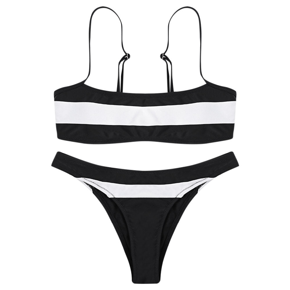 Sexy Spaghetti Strap Color Blocking Striped Print Women Bikini Set