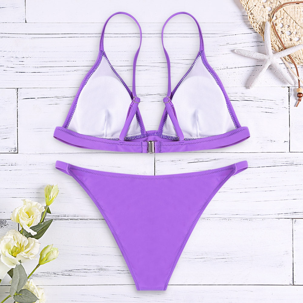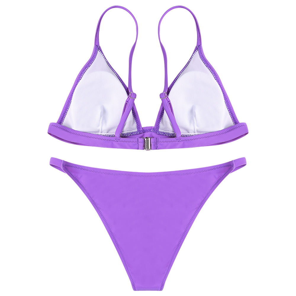 Create a simple fashion and shows off your sexy body curve in this solid color bikini.