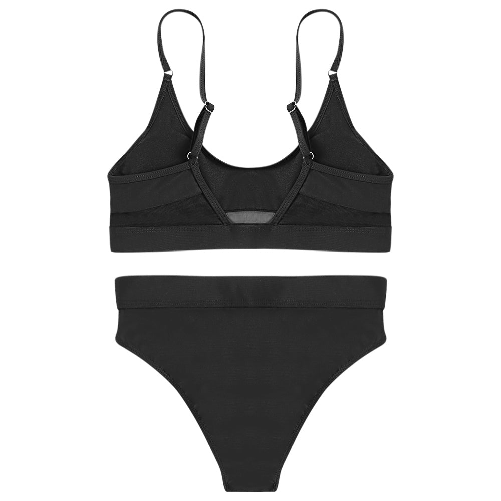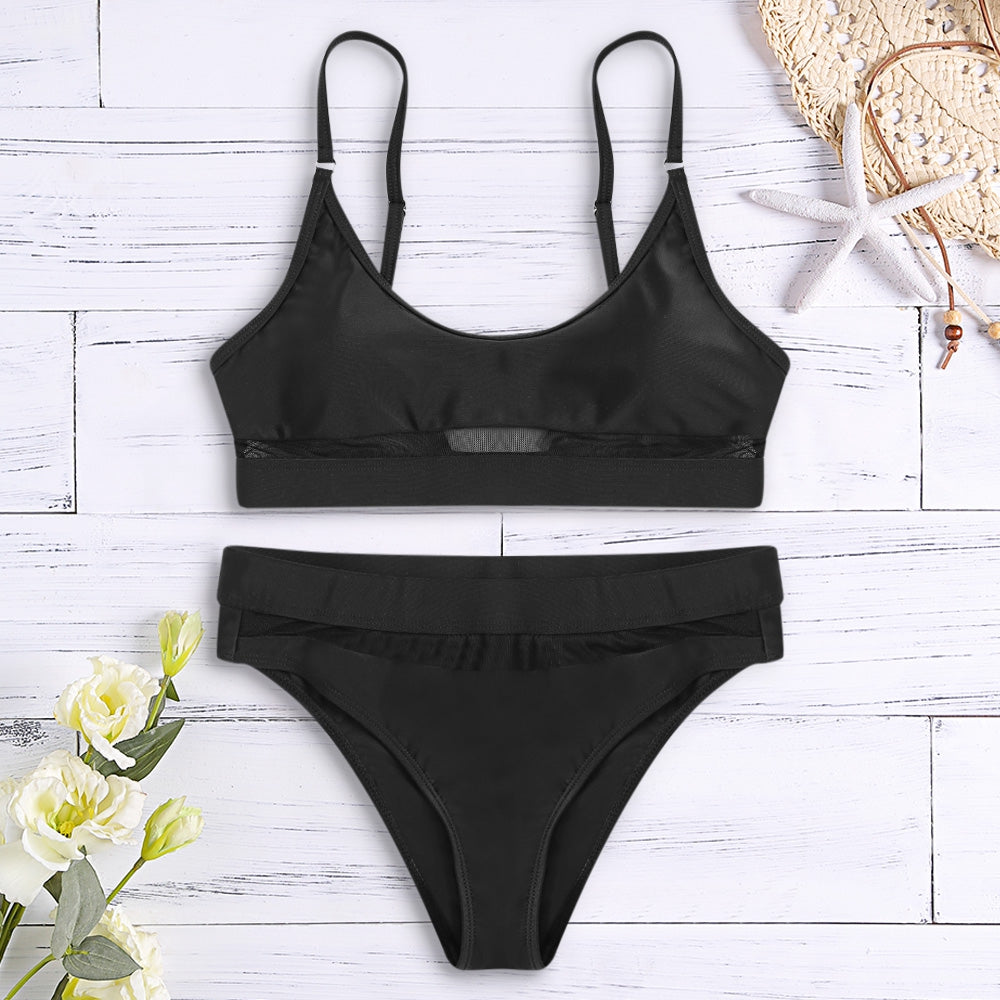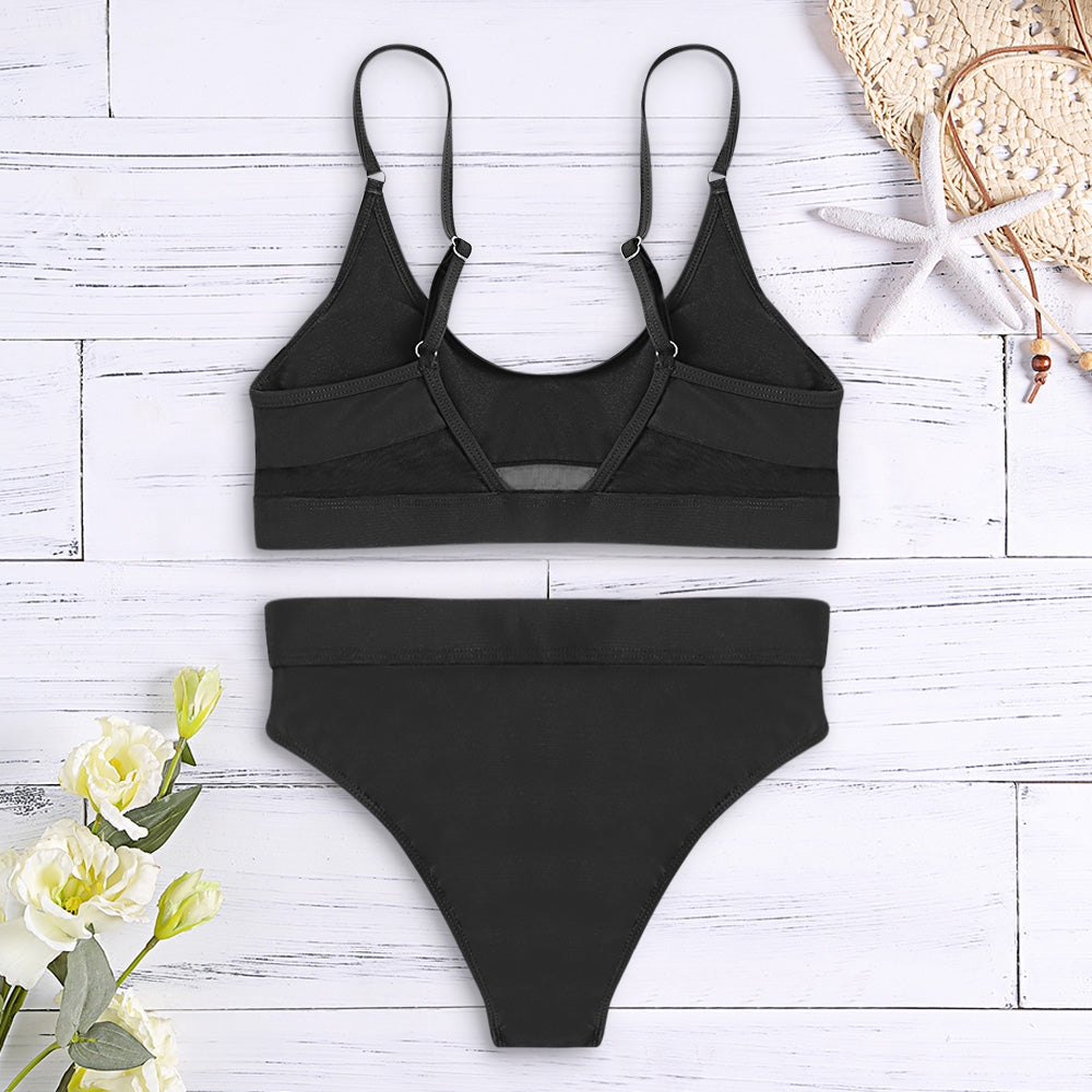 Padded See-through Women Bikini Set Mid Waist Swimsuit