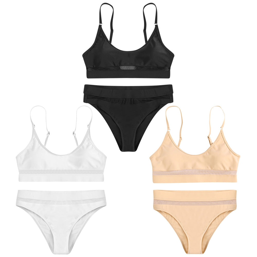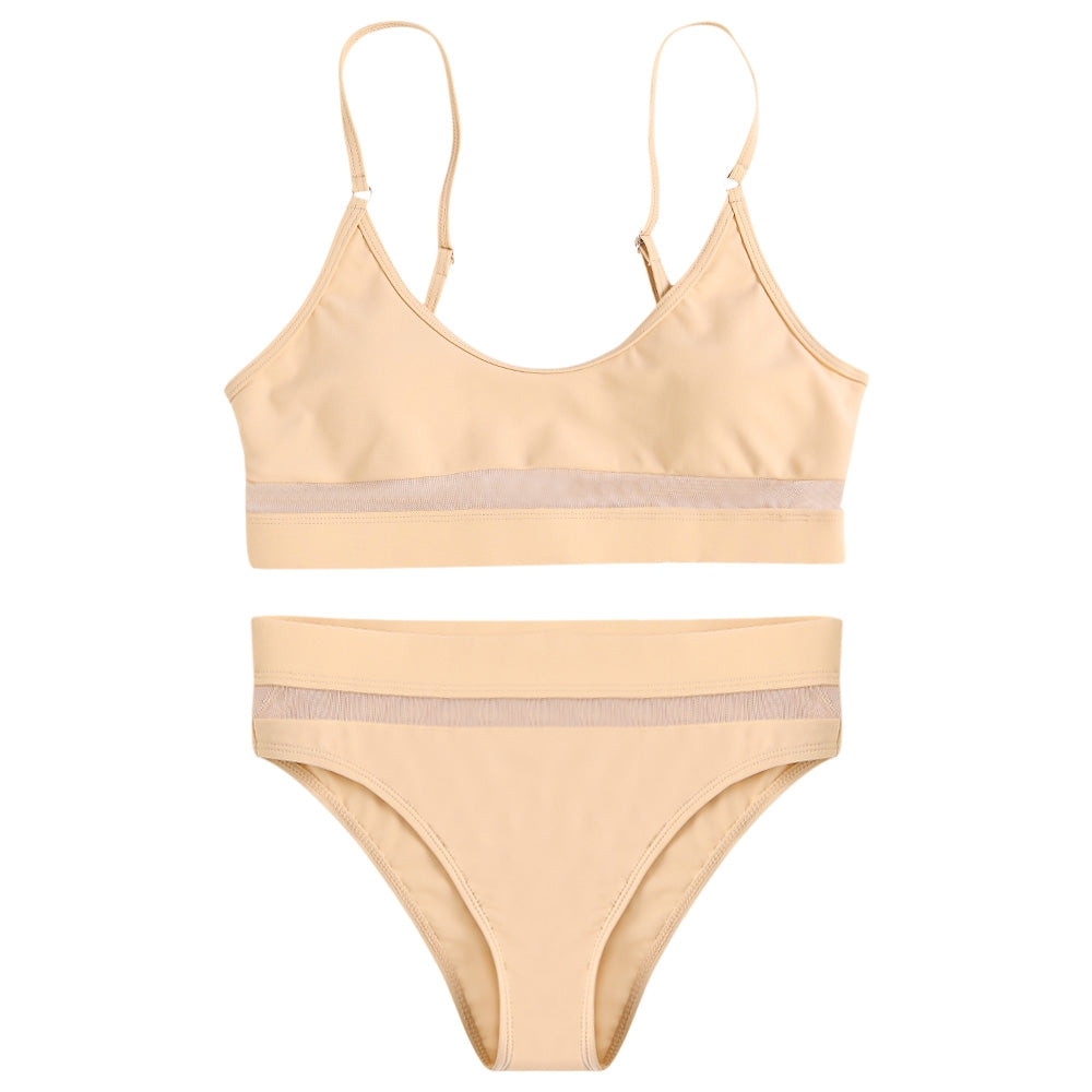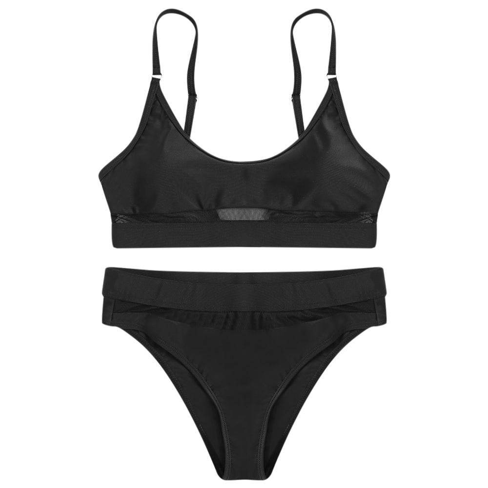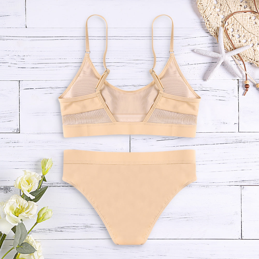 Padded See-through Women Bikini Set Mid Waist Swimsuit
