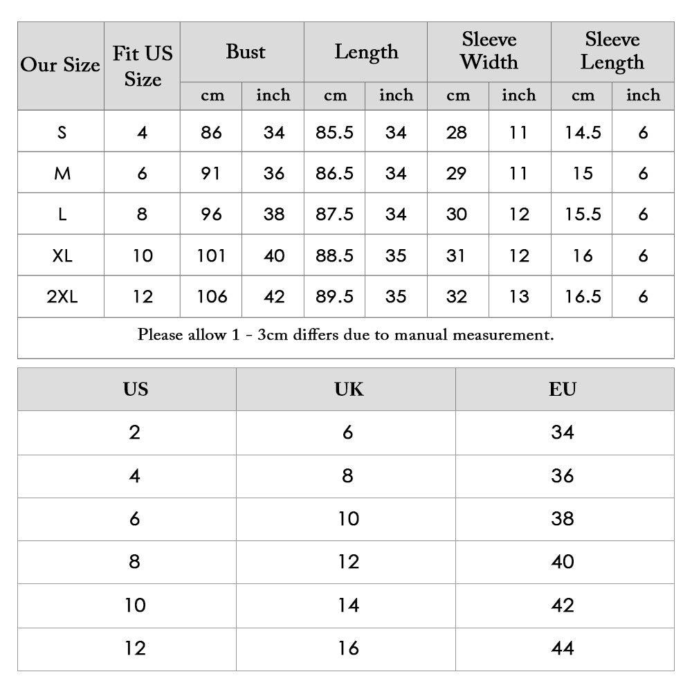 Size Bust Waist Length Sleeve Width Sleeve Length