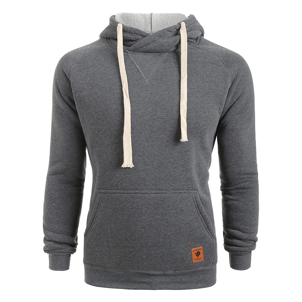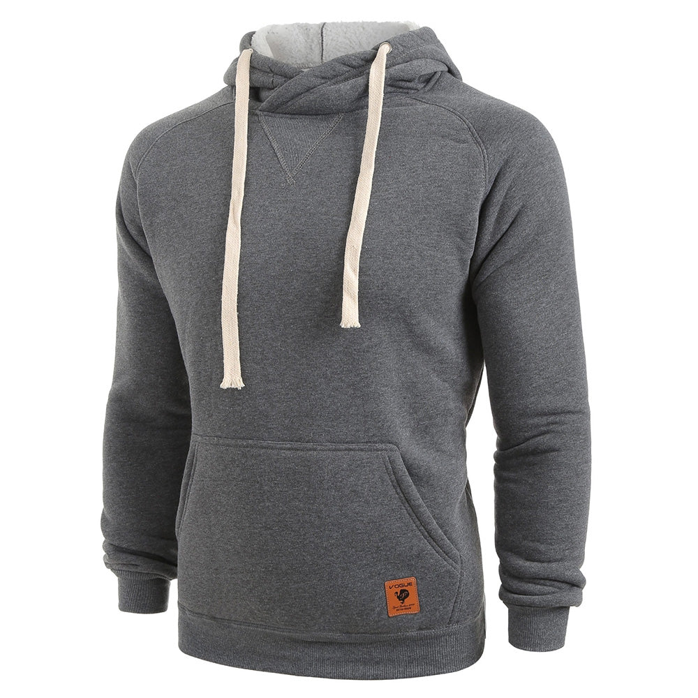 Cowl Neck Kangaroo Pocket Plush Drawstring Hoodie