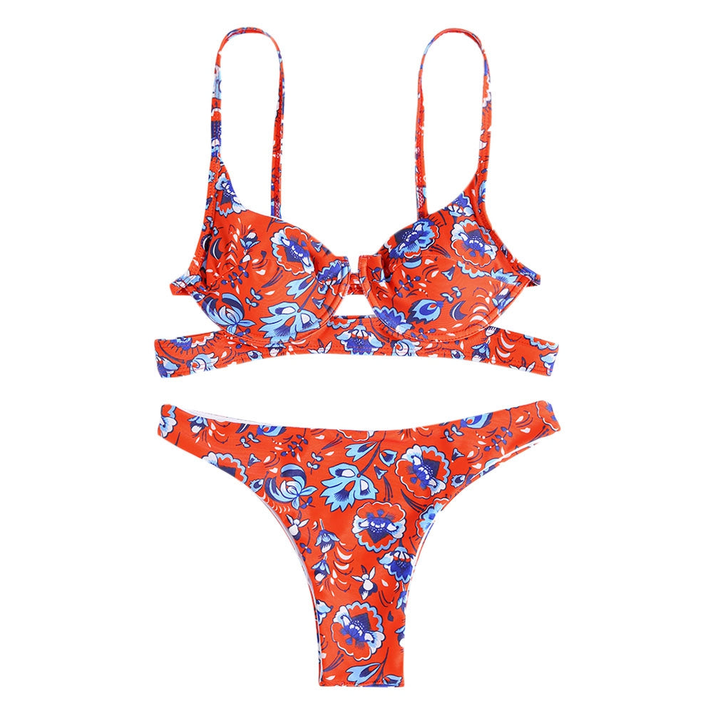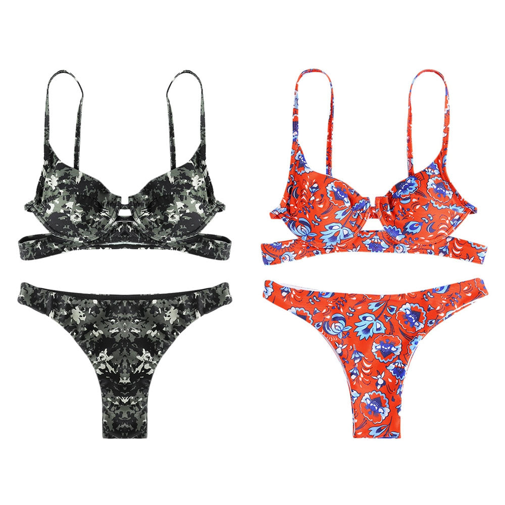 Sexy sling design bikini with hollow-out straps back for a striking look.