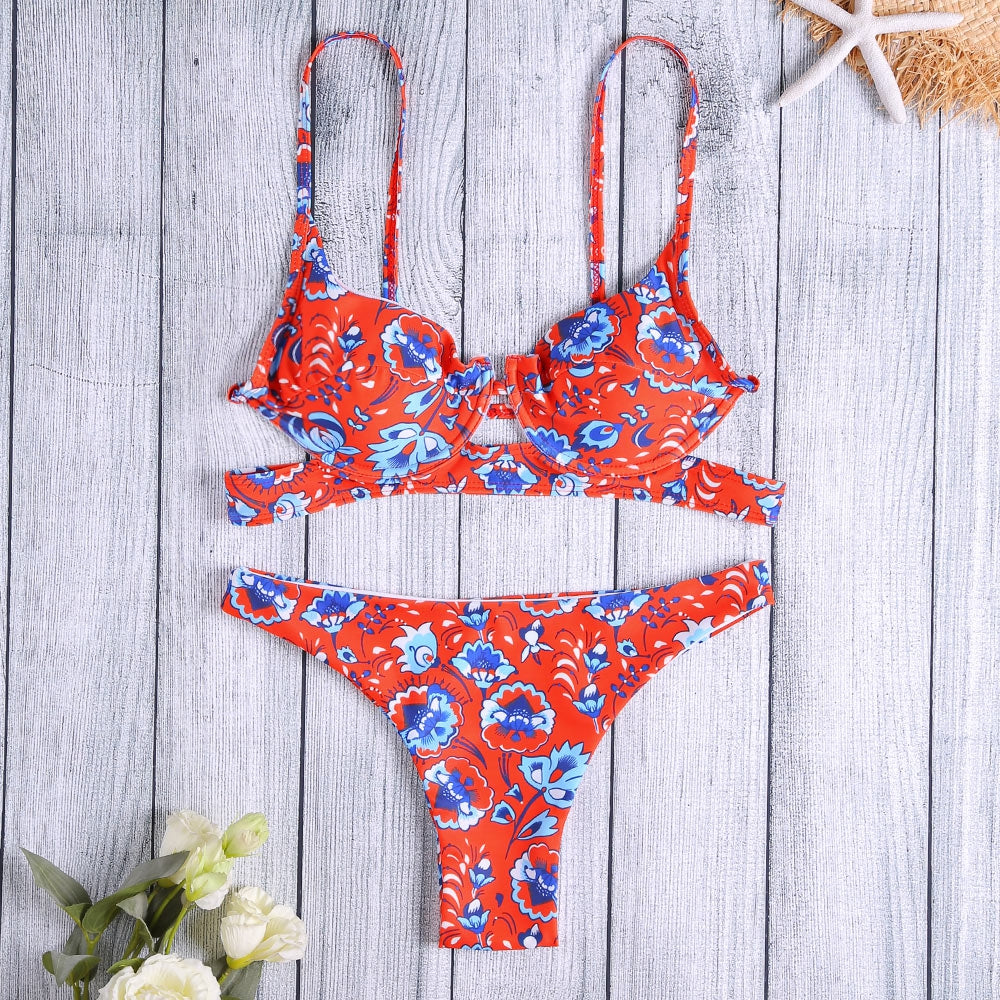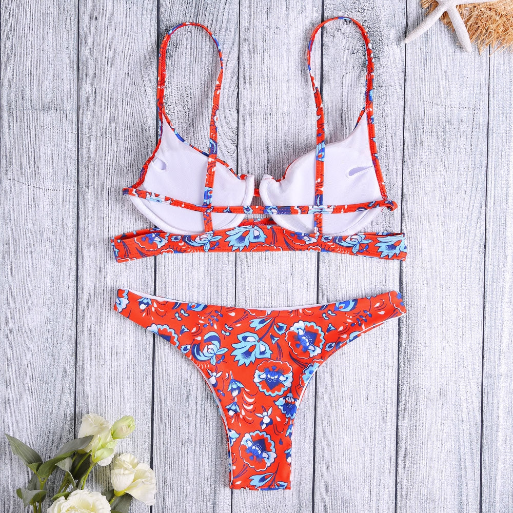 Underwire Swimwear Strap Backless Swimsuit Women Sexy Bikini Set
