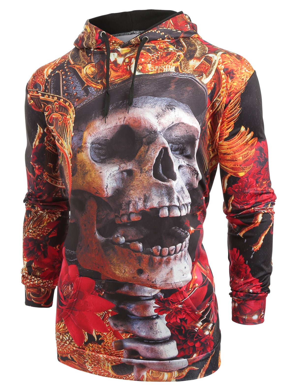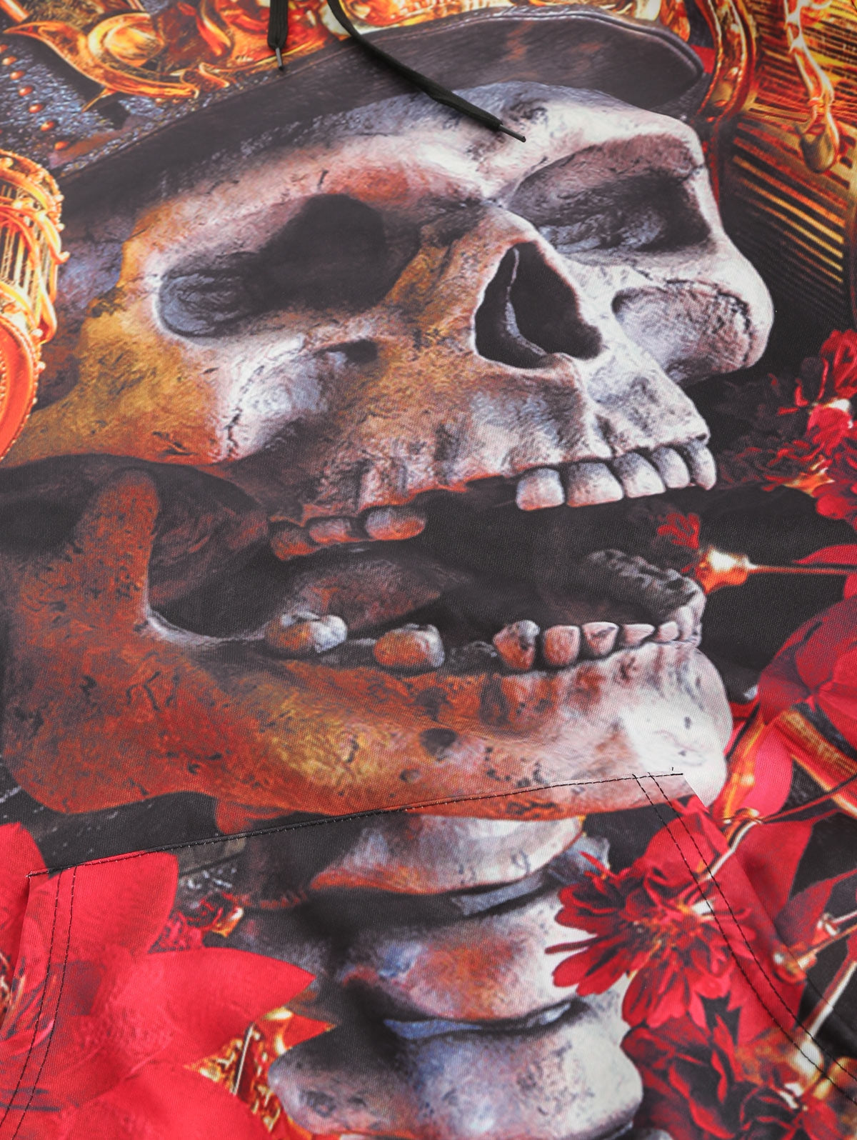 Kangaroo Pocket Skull Flower 3D Print Hoodie