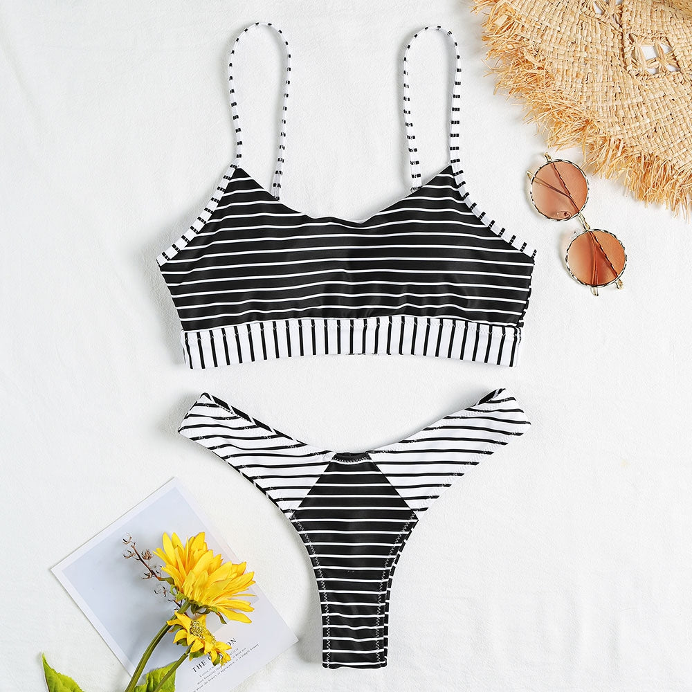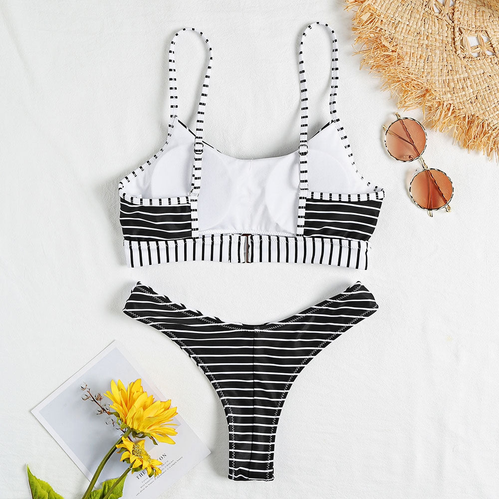 Savor the pleasure of swimming and sunbathing with this striped bikini.