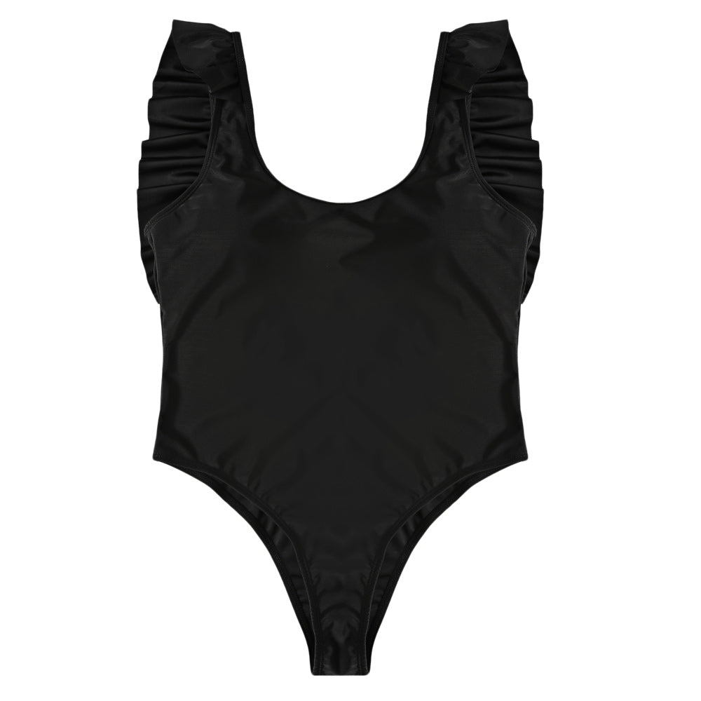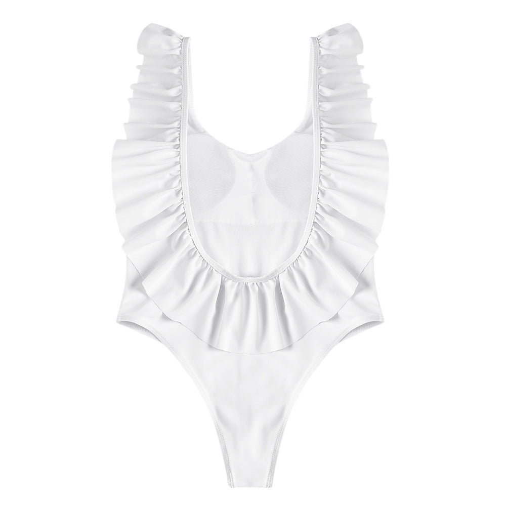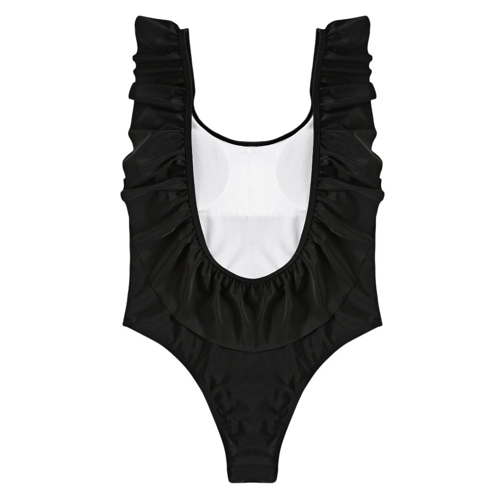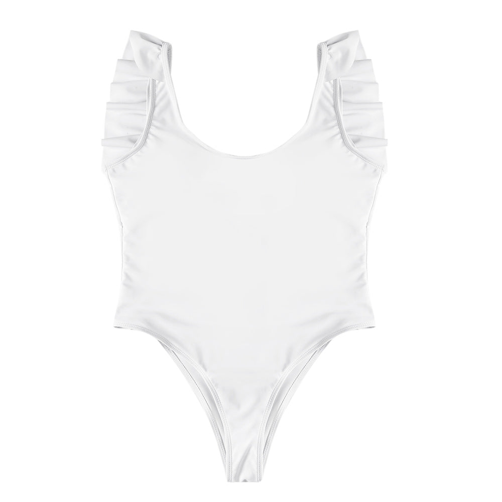 Sexy Scoop Neck Ruffle Sleeveless Solid Color Backless Padded Beachwear Women Swimsuit