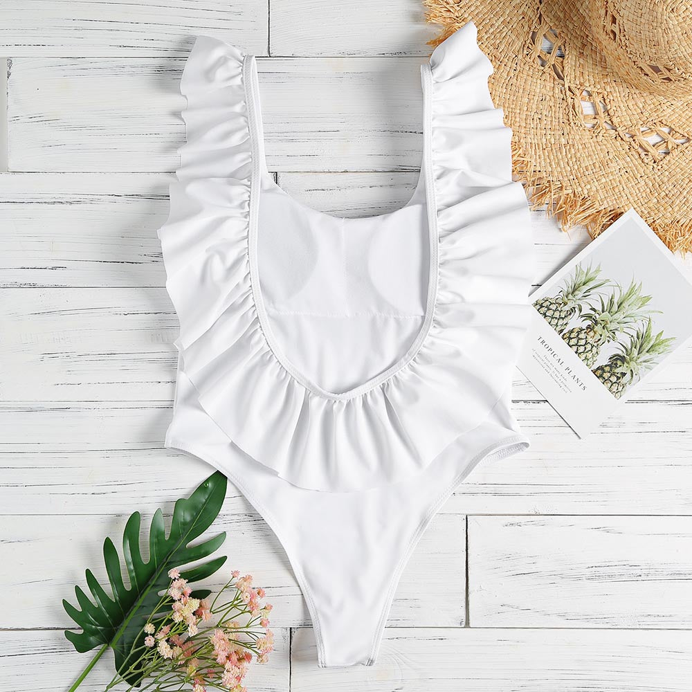 Our ruffled swimsuit is a good companion for swimming on the beach. Wear it to enjoy your happy hour!