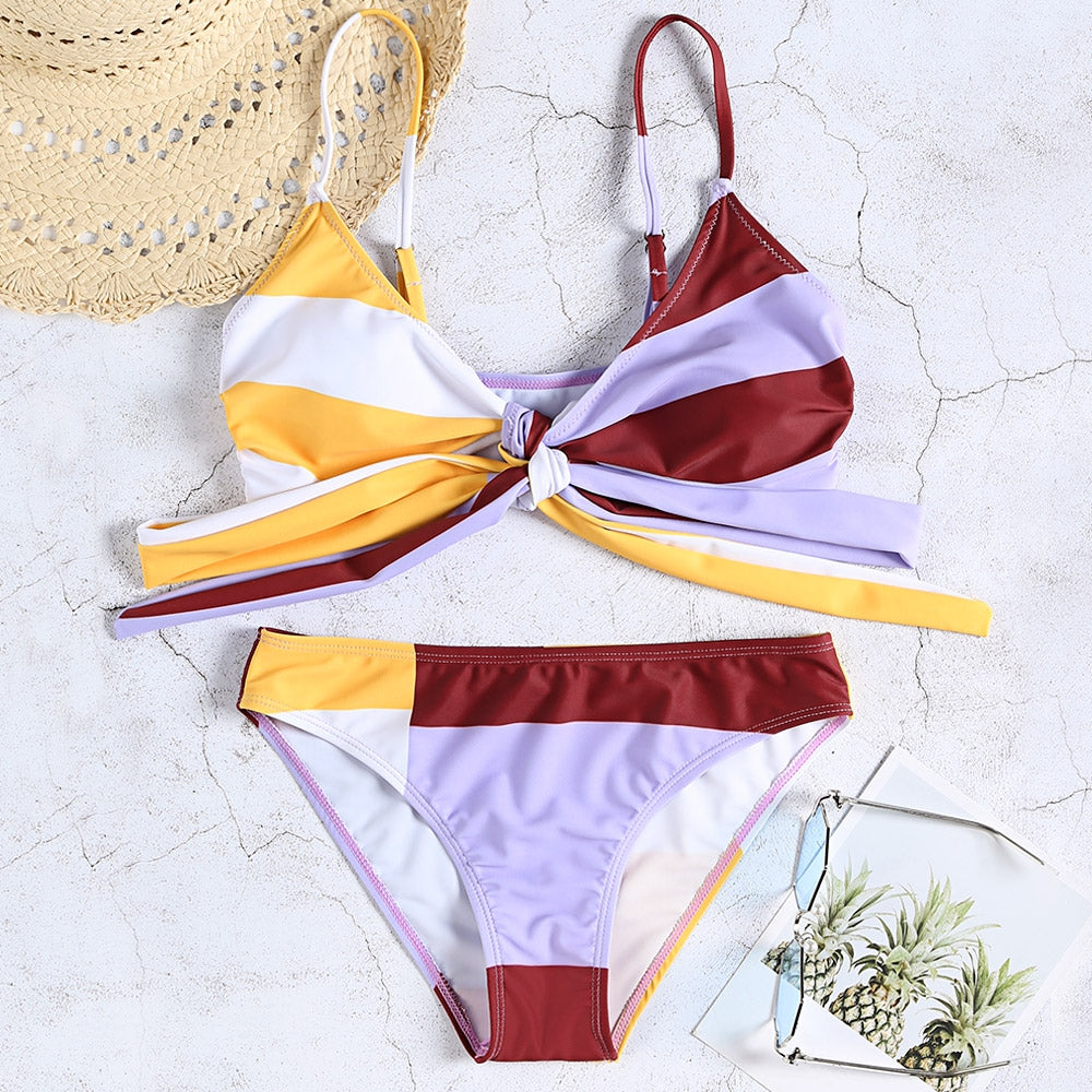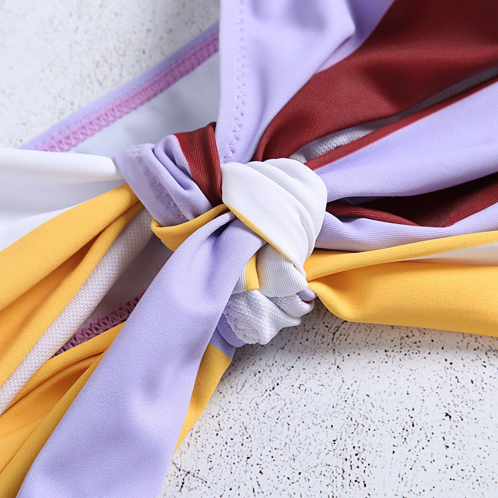Sexy Strappy Sleeveless Color Blocking Padded Women Bikini Set