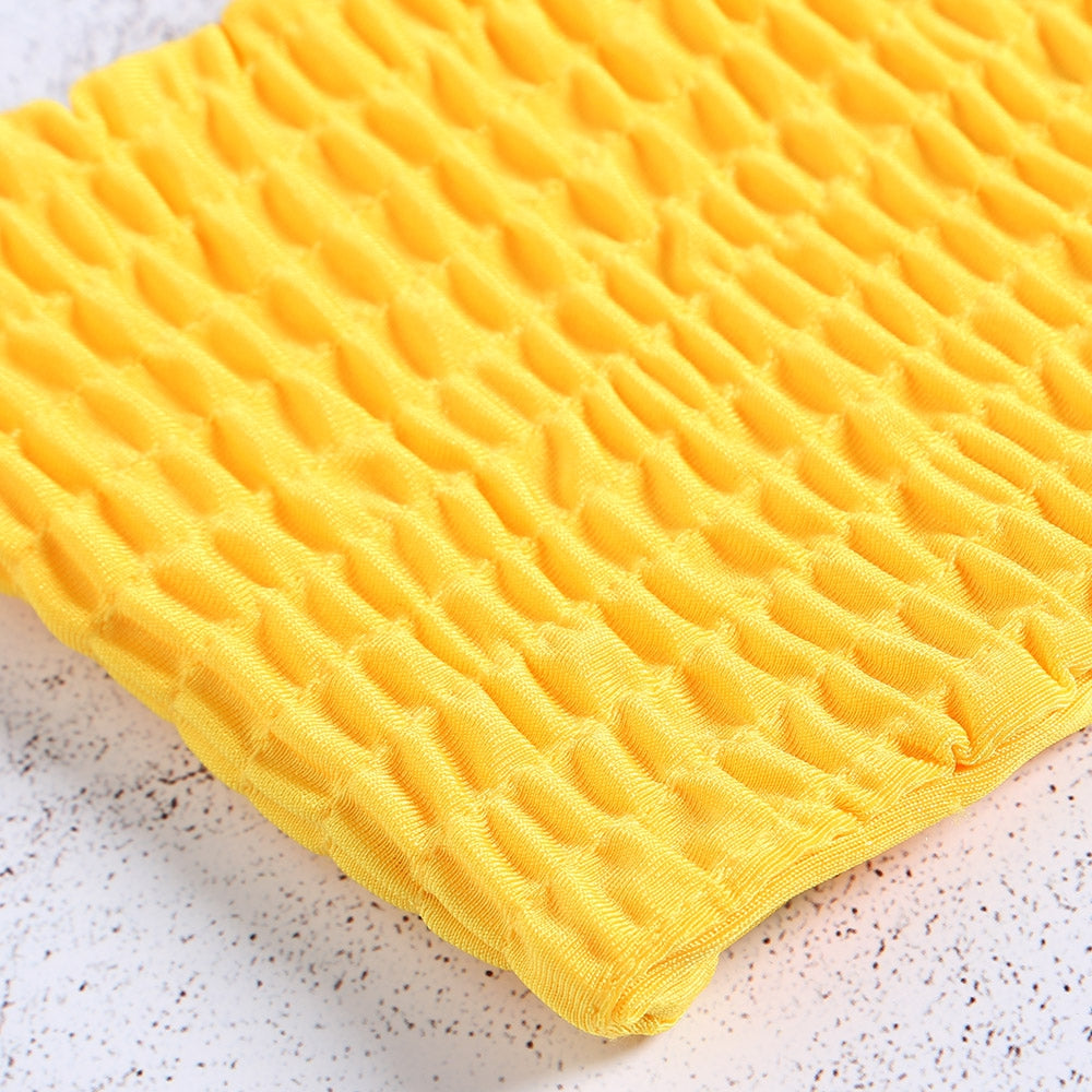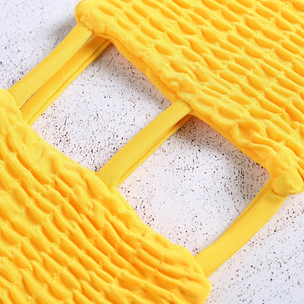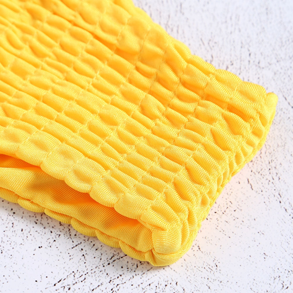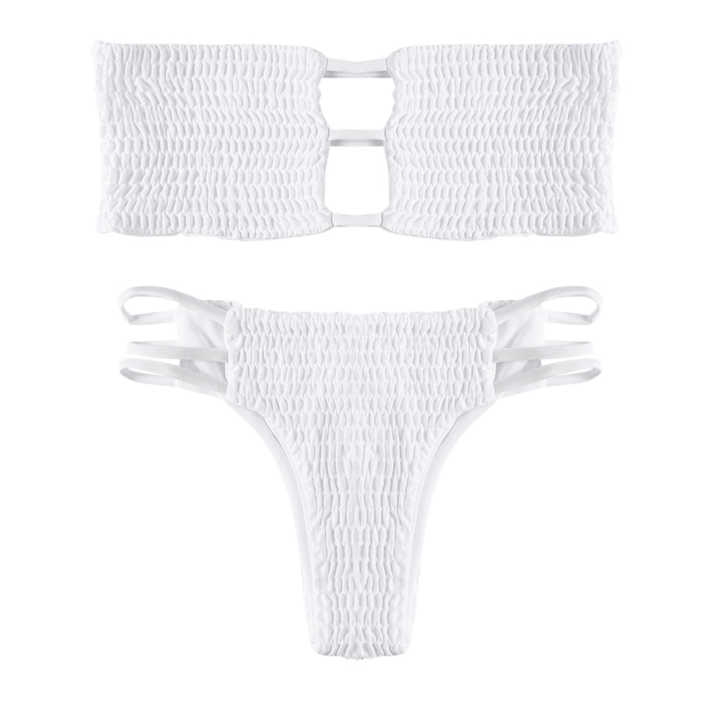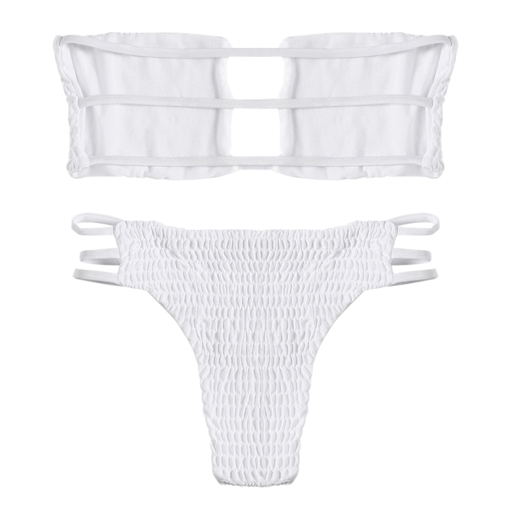 Strapless Backless Solid Color Low Waist Shirring Strappy Swimsuit Women Bikini Set