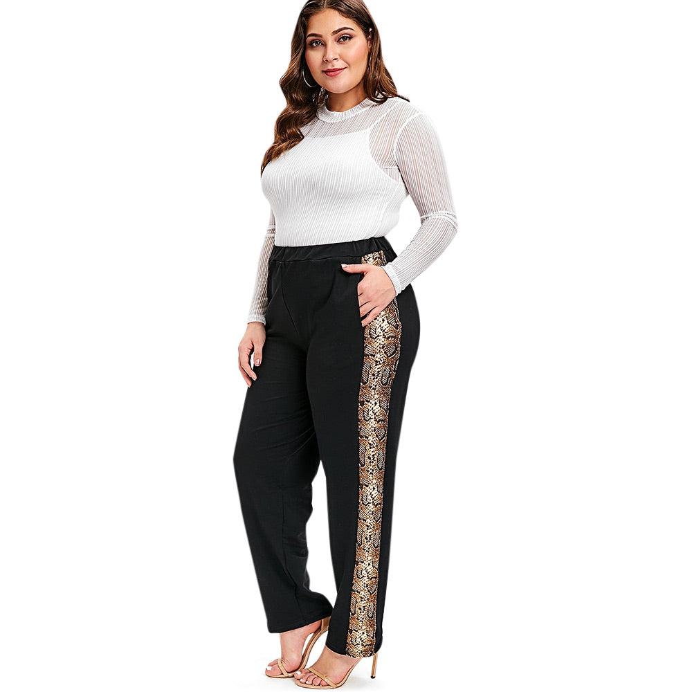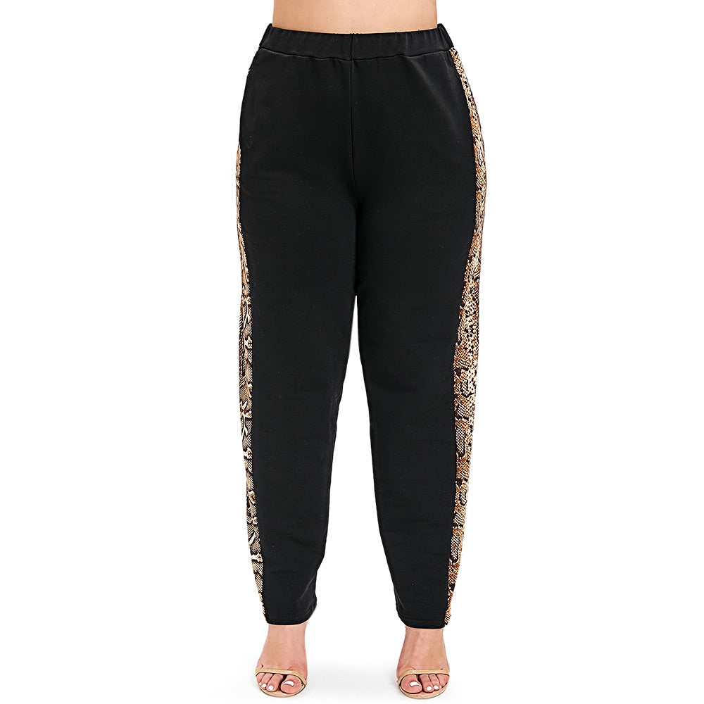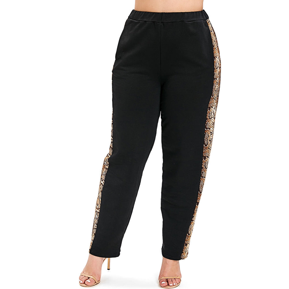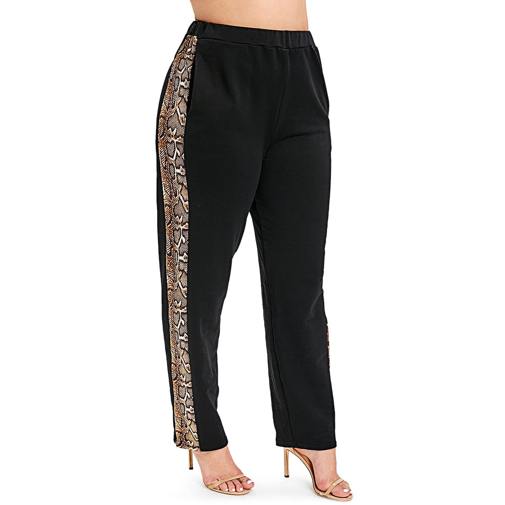 Plus Size Side Snakeskin Print Elastic Waist Pants