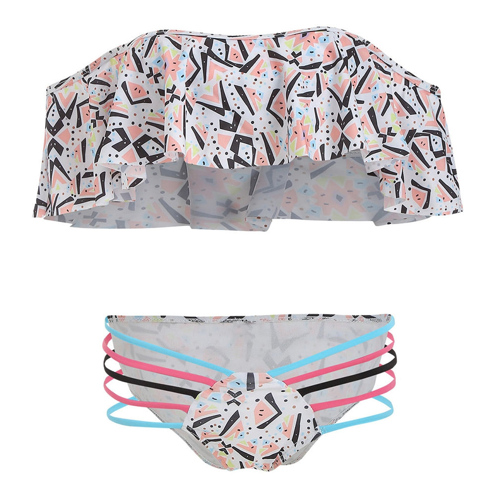 It's never been easier to catch waves than with our full print Bikini set! Features a ruffled off-the-shoulder bikini top with short sleeves. Perfect to wear on and off the beach. Includes a strappy cut-out detail matching bikini bottoms.