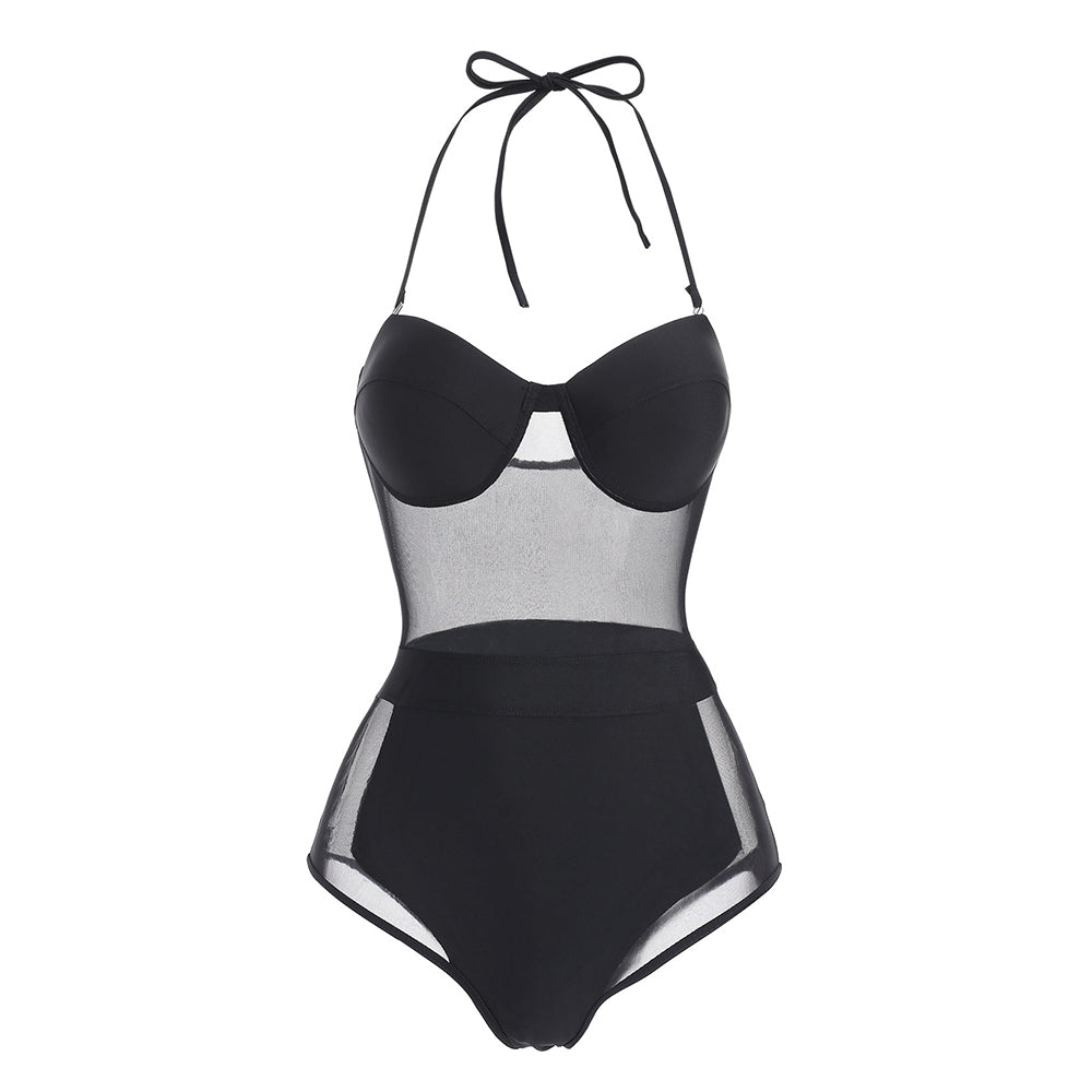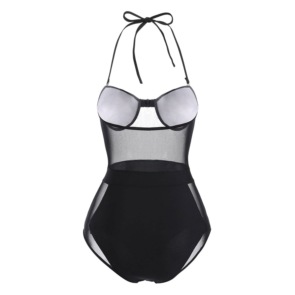 Halter Neck Mesh Panel Swimwear