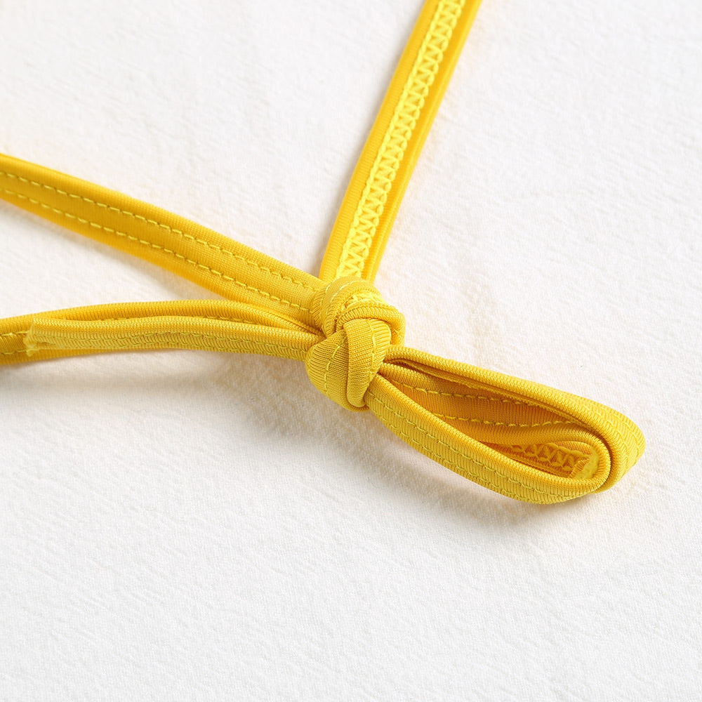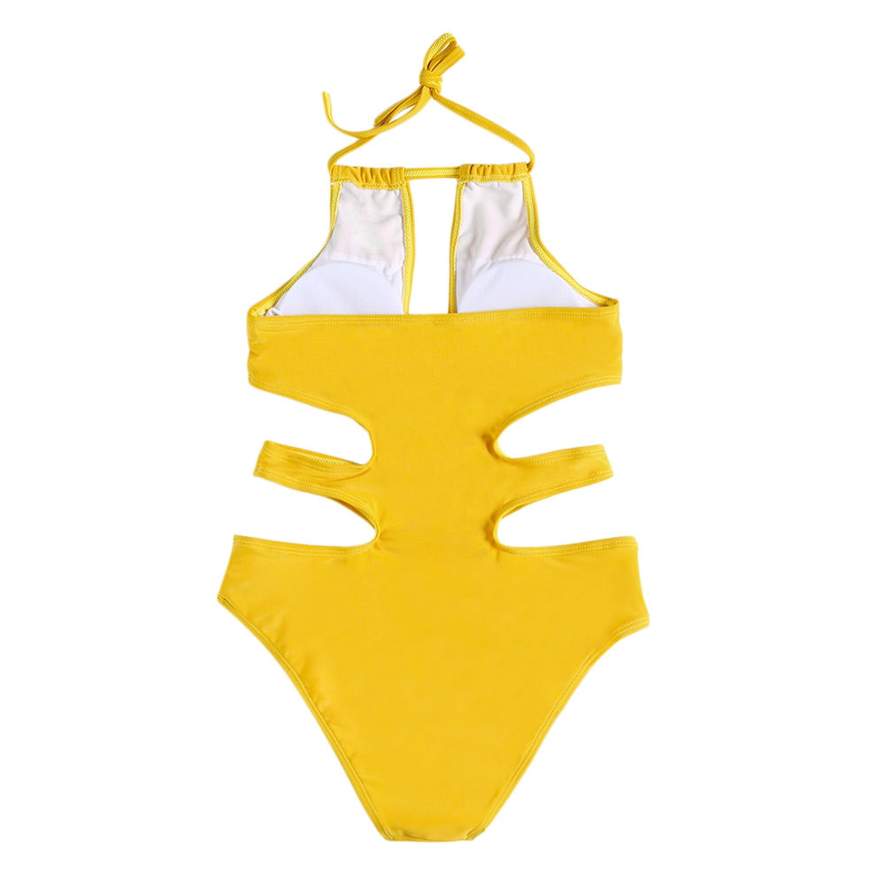 Halter Neck Padded Backless Cut Out Solid Color Women Swimsuit