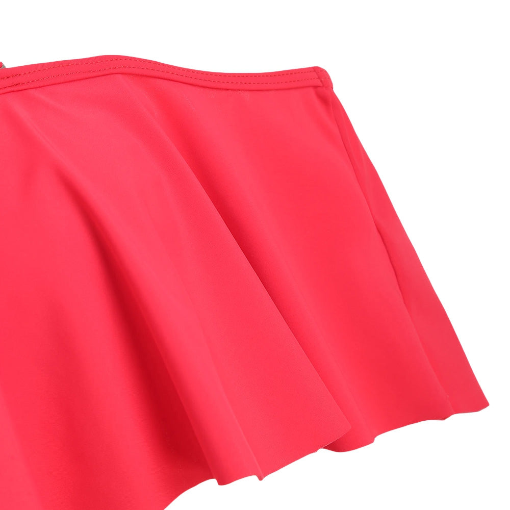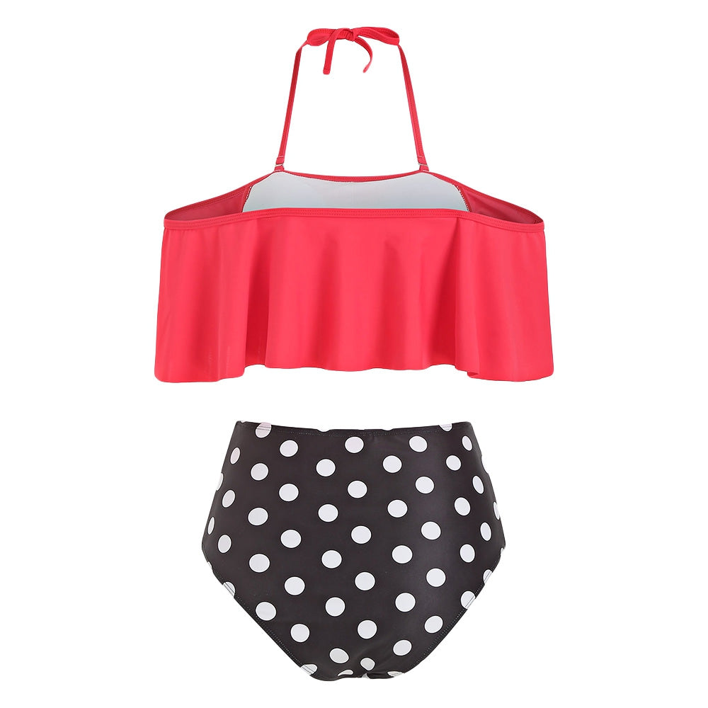 Rock your look on the beach in our bikini. This halter bikini set features a ruffle overlay at the bust and padded cups. The matching dotted bikini bottom is ruched at the sides for a flattering fit.