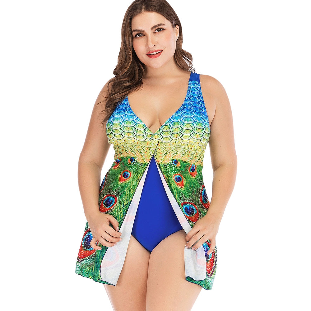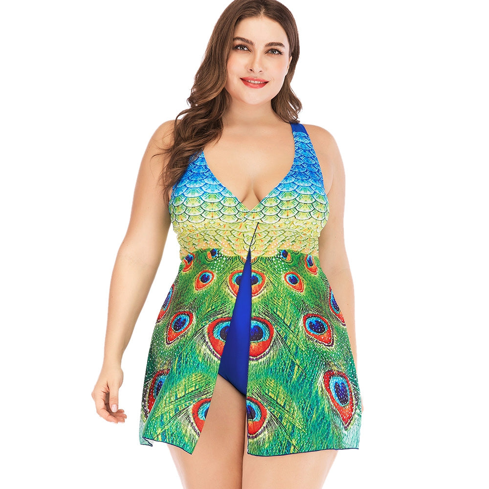 The eye-catching print catches our attention. The one-piece swimsuit is the perfect combination of the peacock feather print. The printed swimwear has a plunging neckline and slit design at the front for added appeal. It is a good choice when you wear this swimsuit lie down the beach.