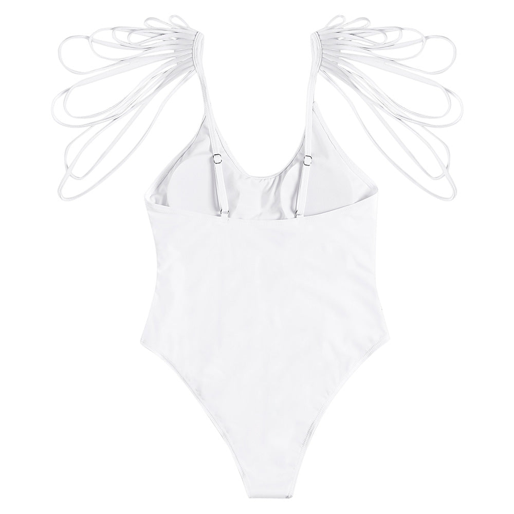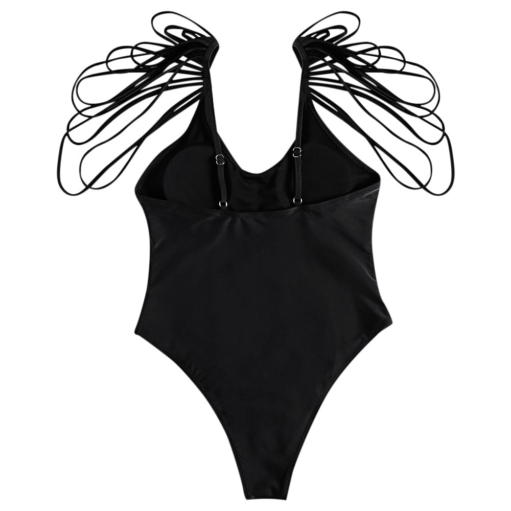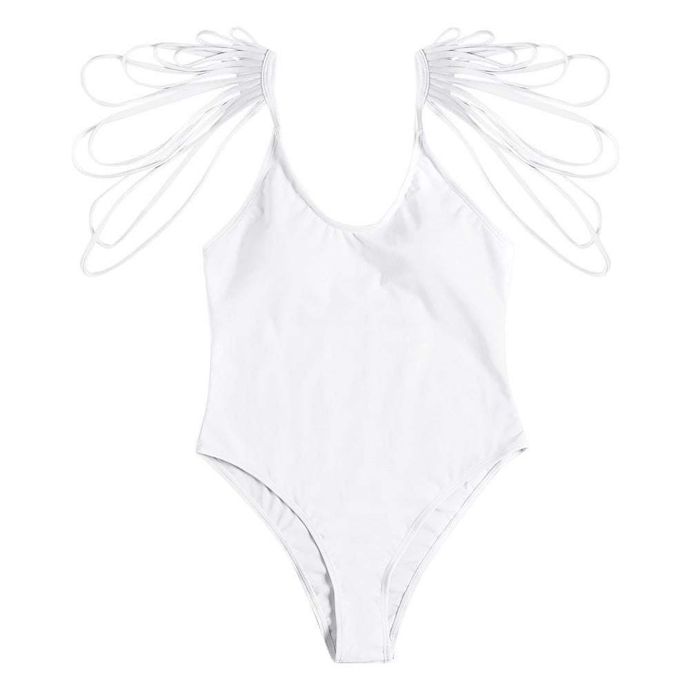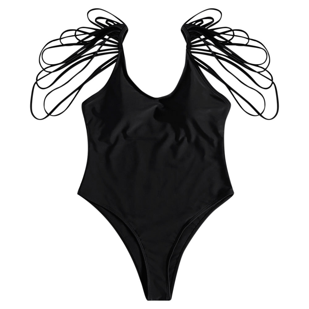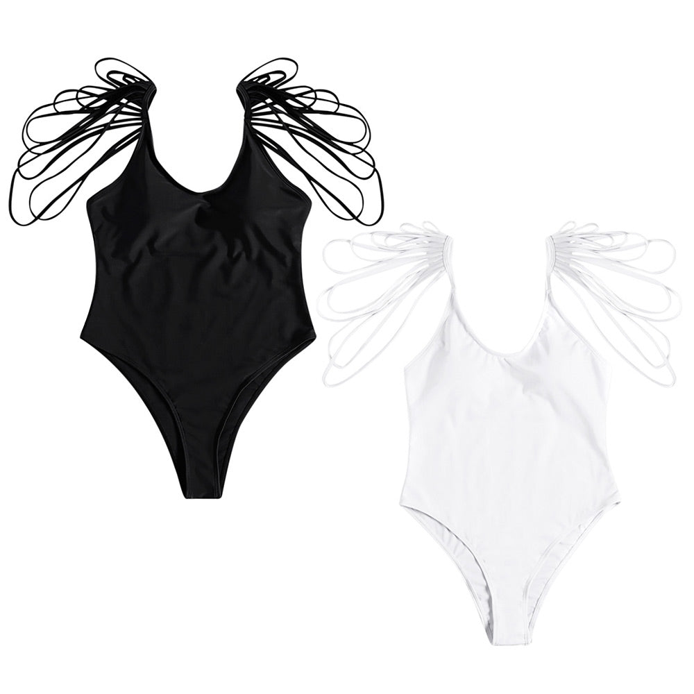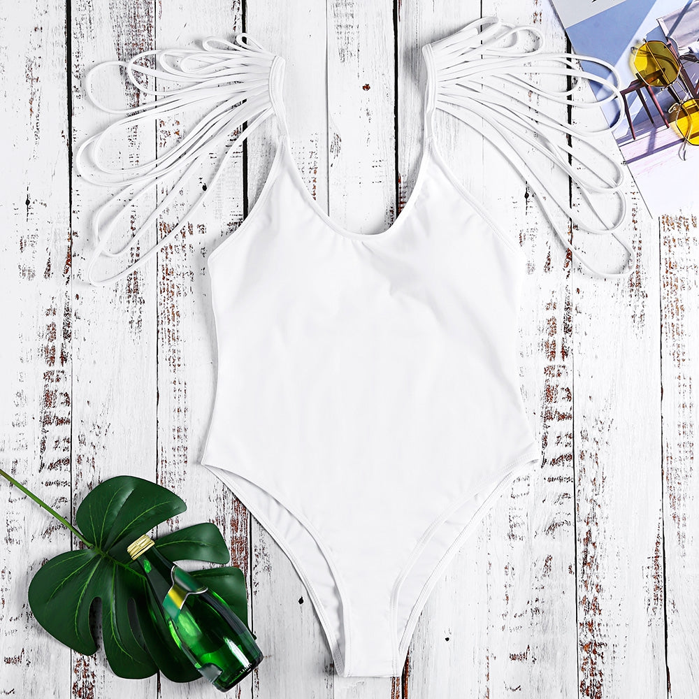 Scoop Neck Backless Padded Strappy Solid Color Women Swimsuit