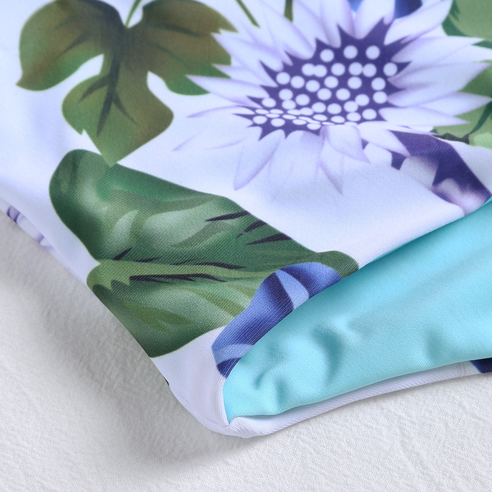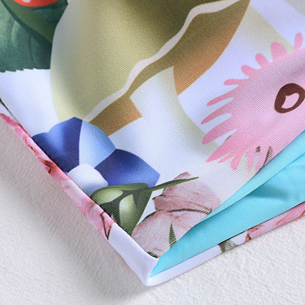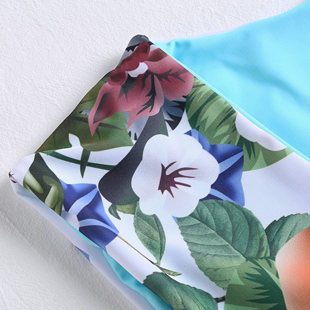 Floral print on the bikini is colorful and vivid.