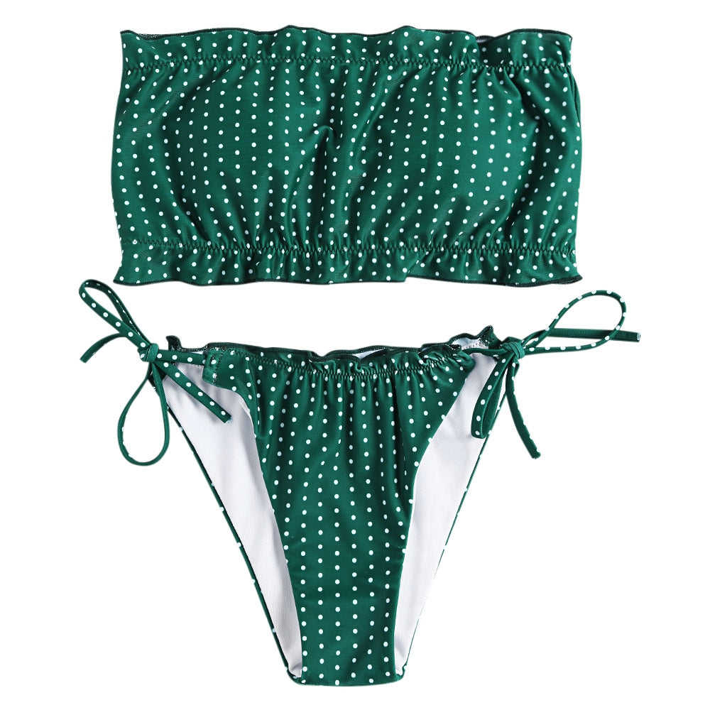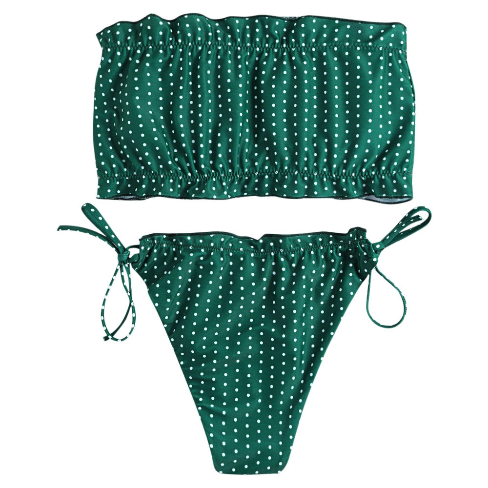 Strapless Backless Padded Polka Dot Print Low Waist Women Bikini Set