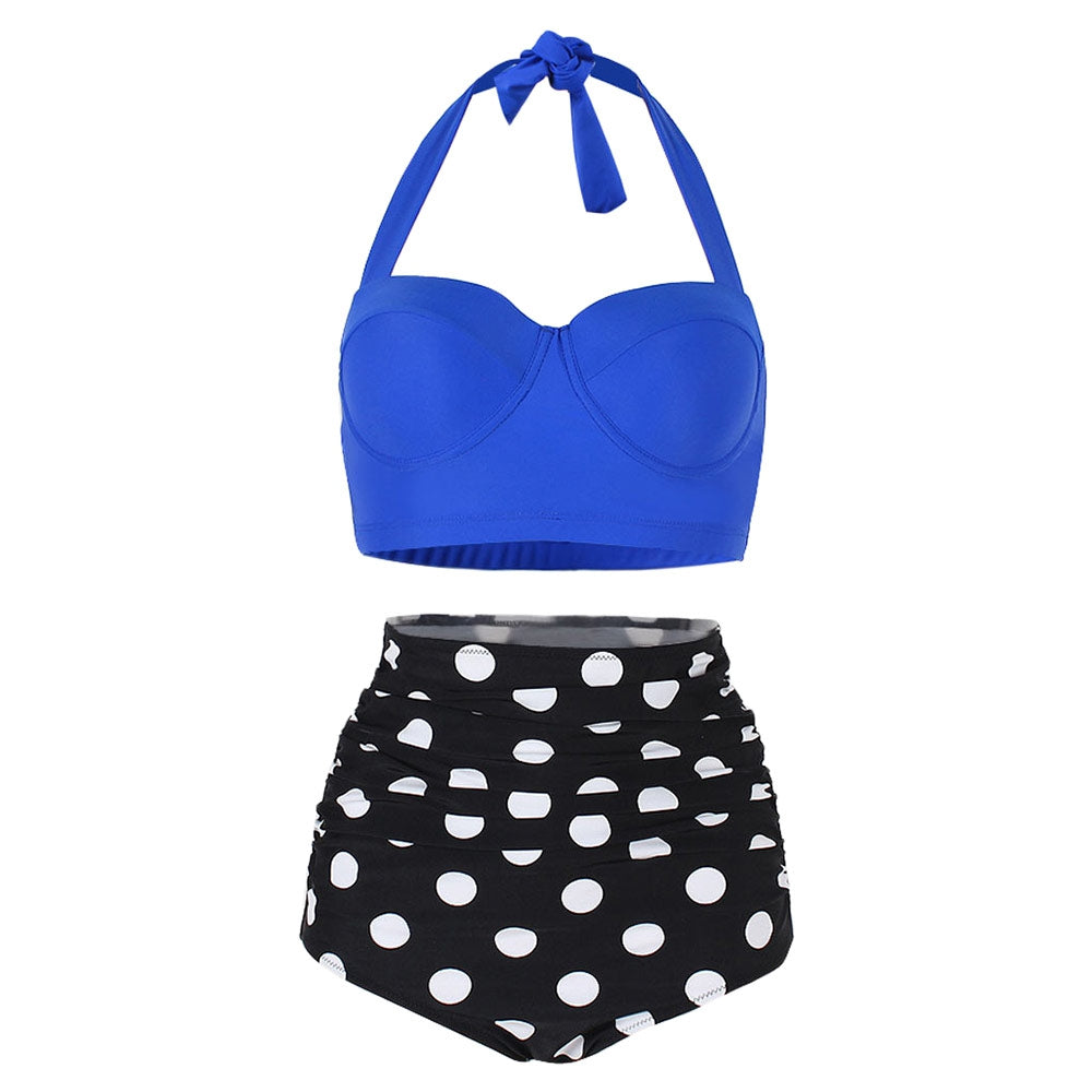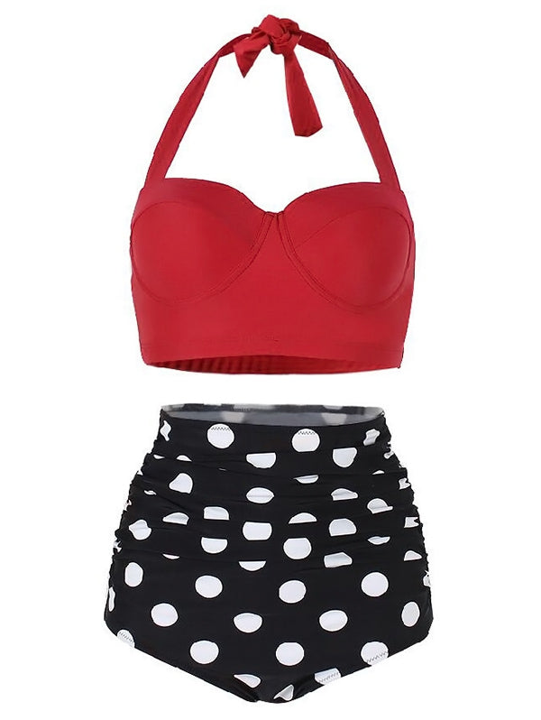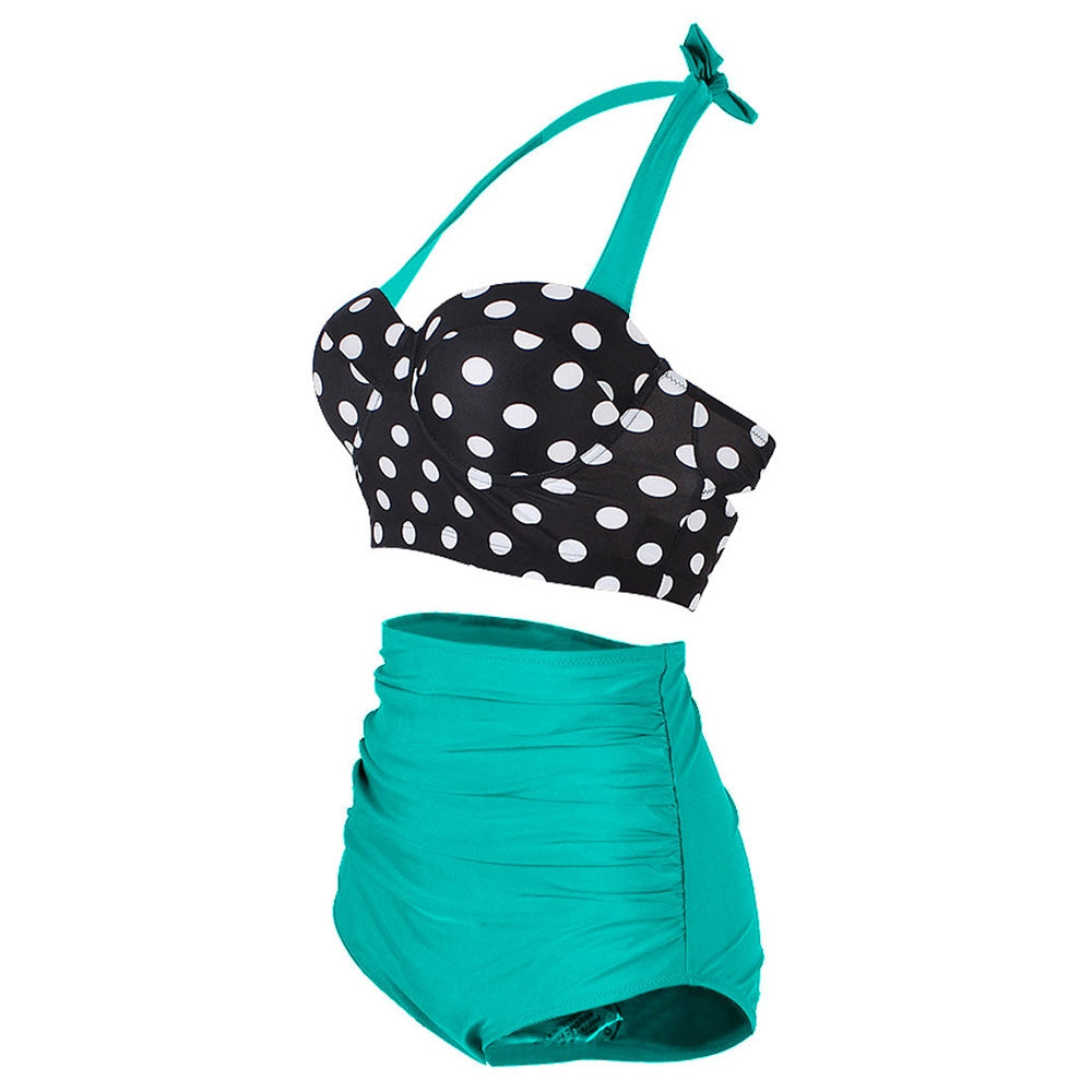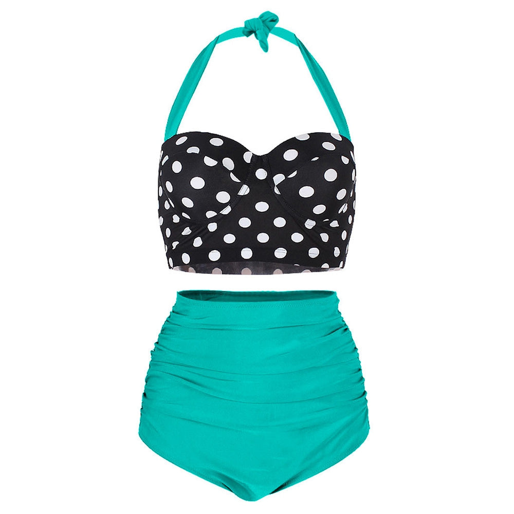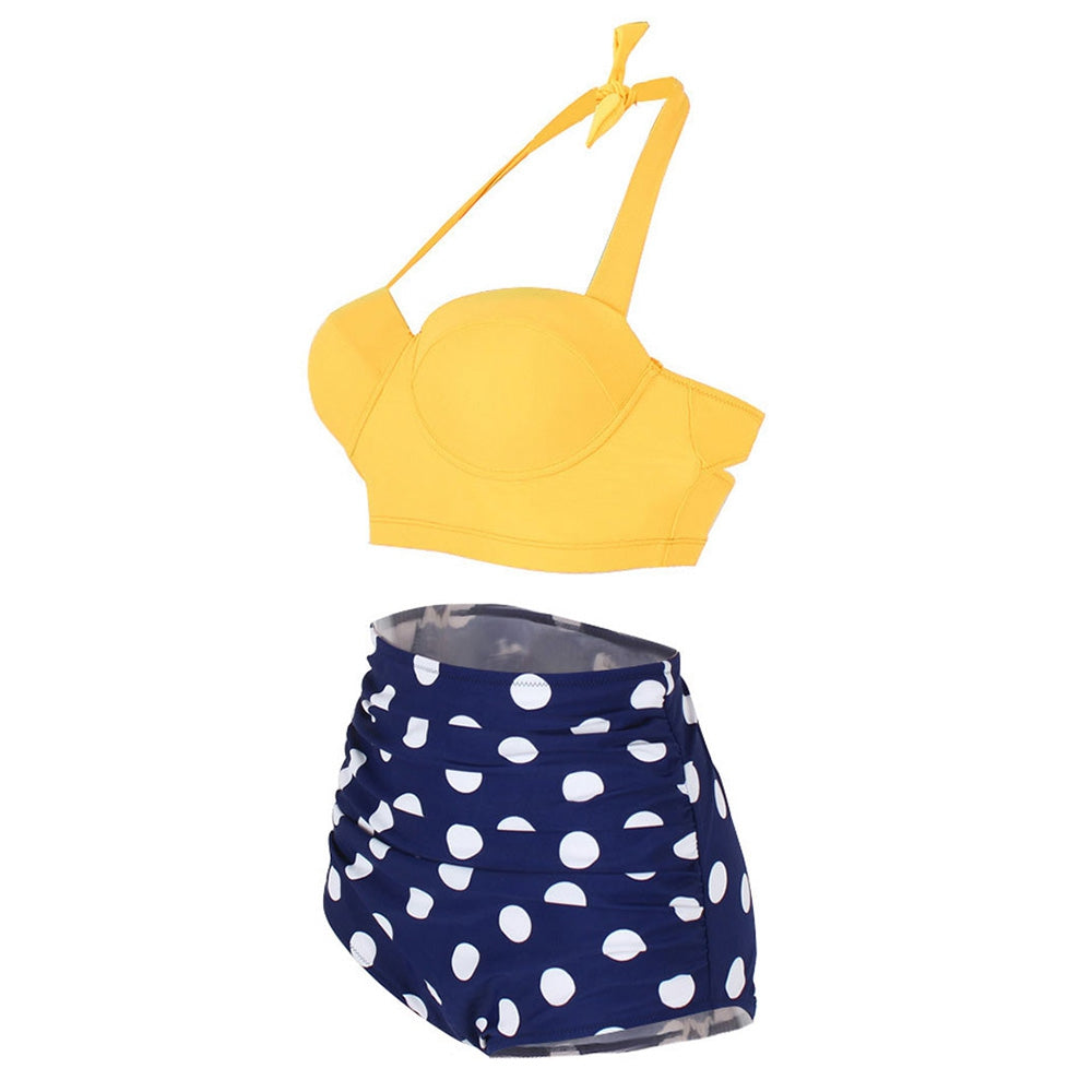 Dotted Ruched Halter Bikini Set
