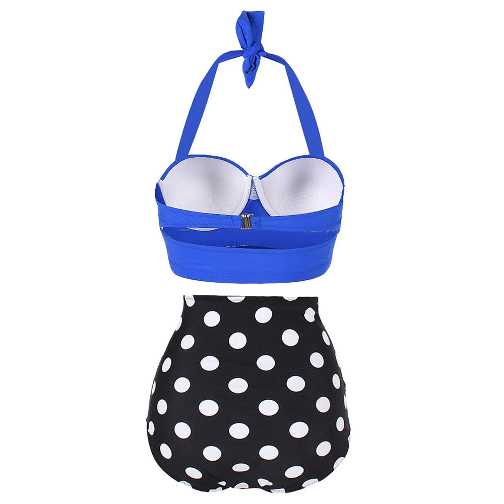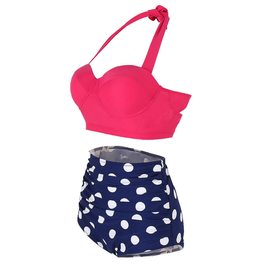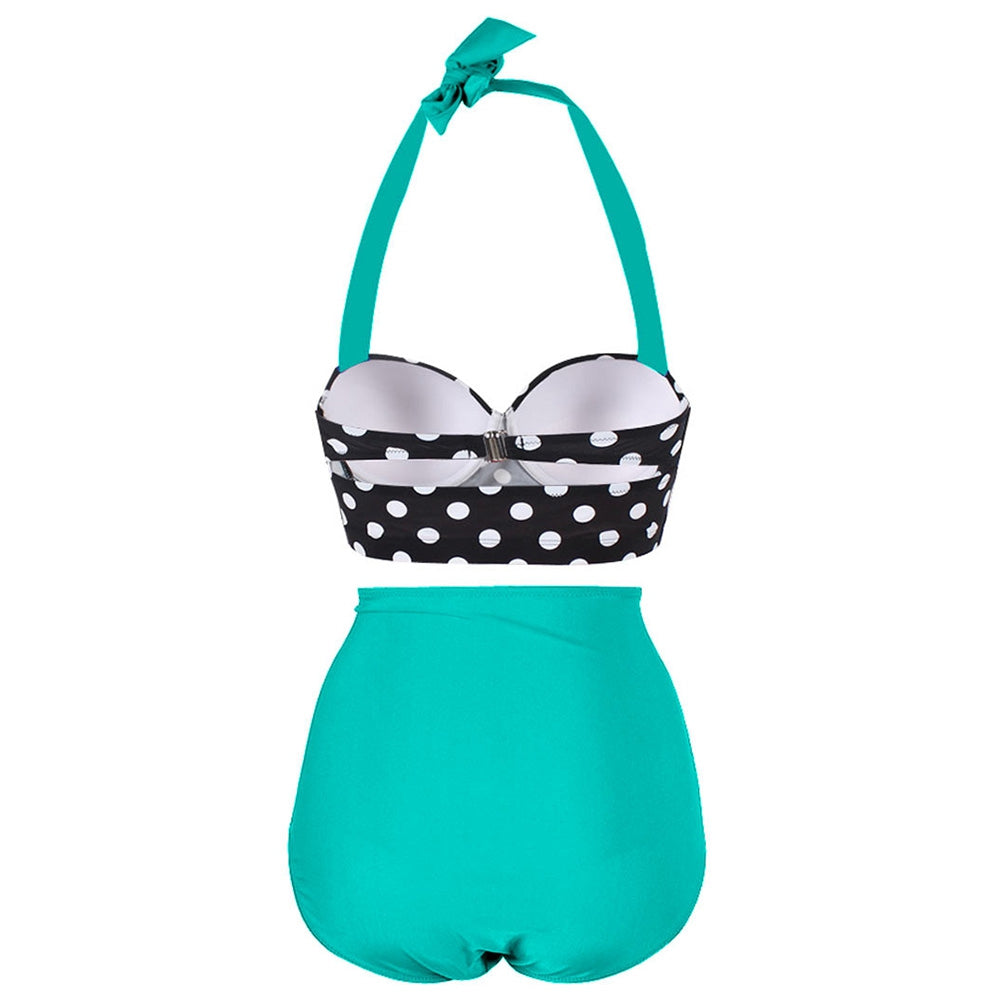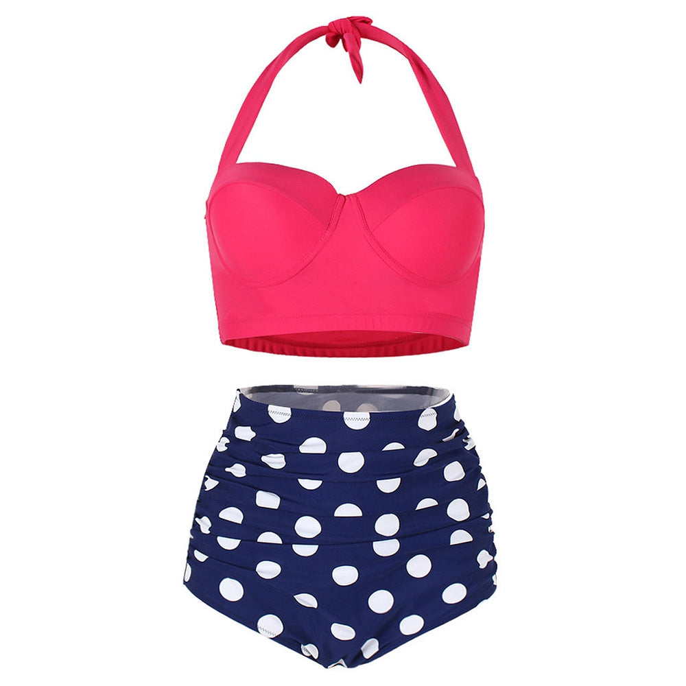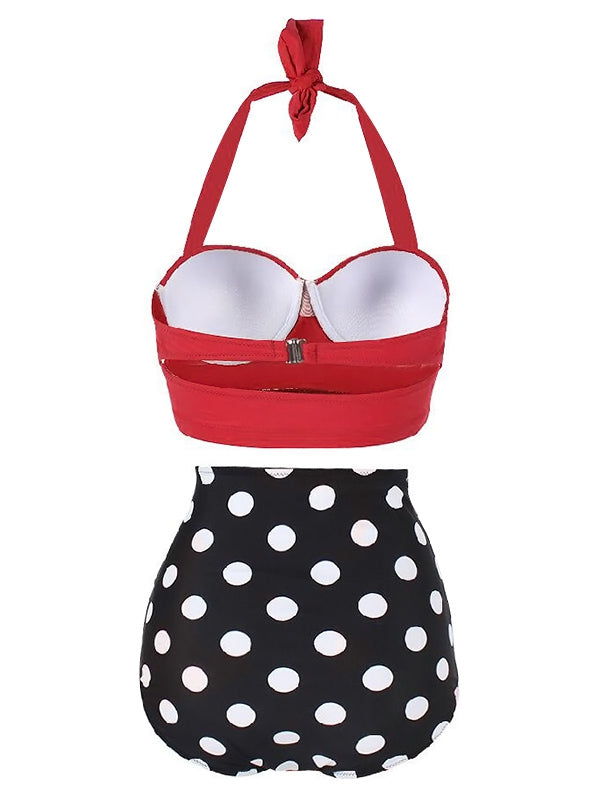 Dotted Ruched Halter Bikini Set