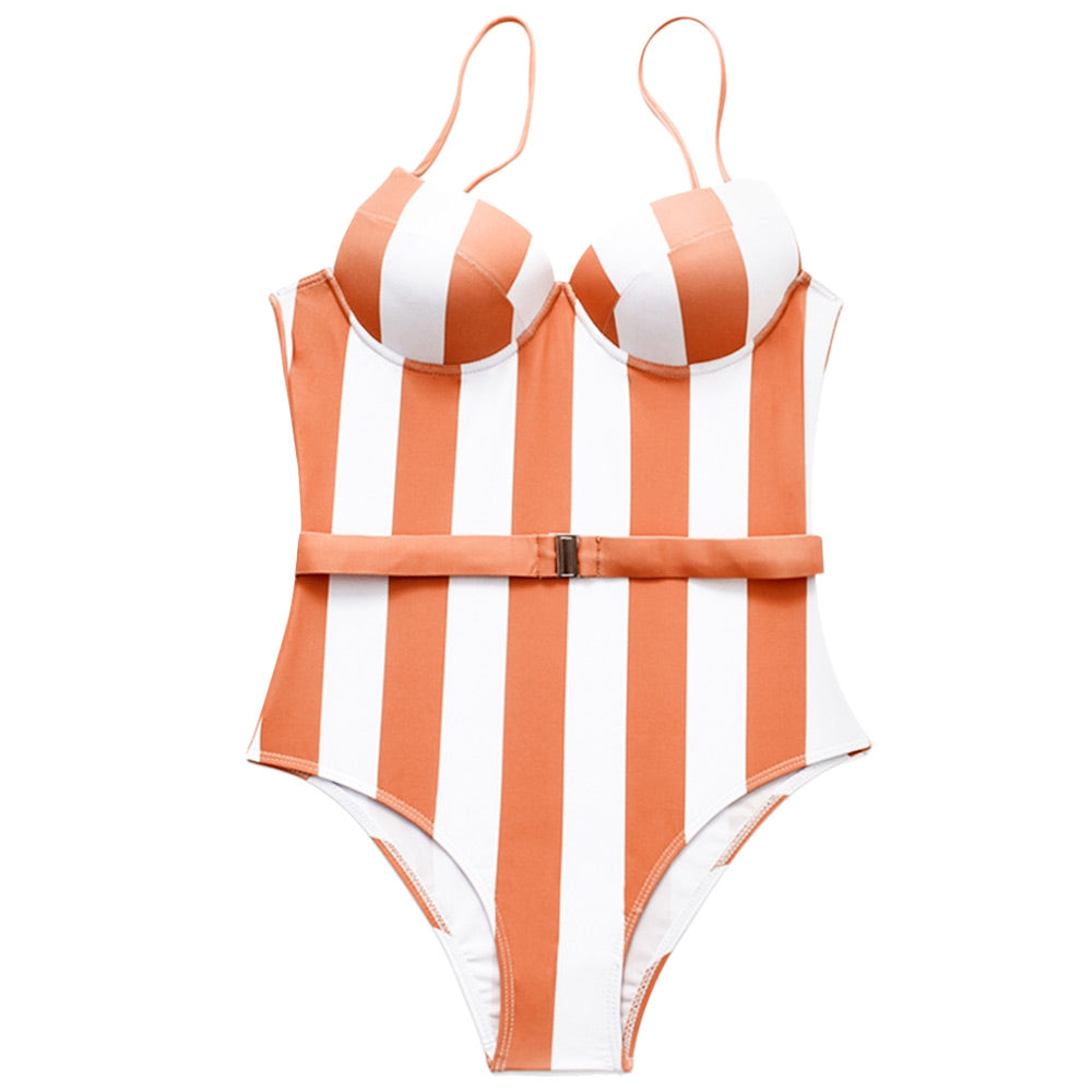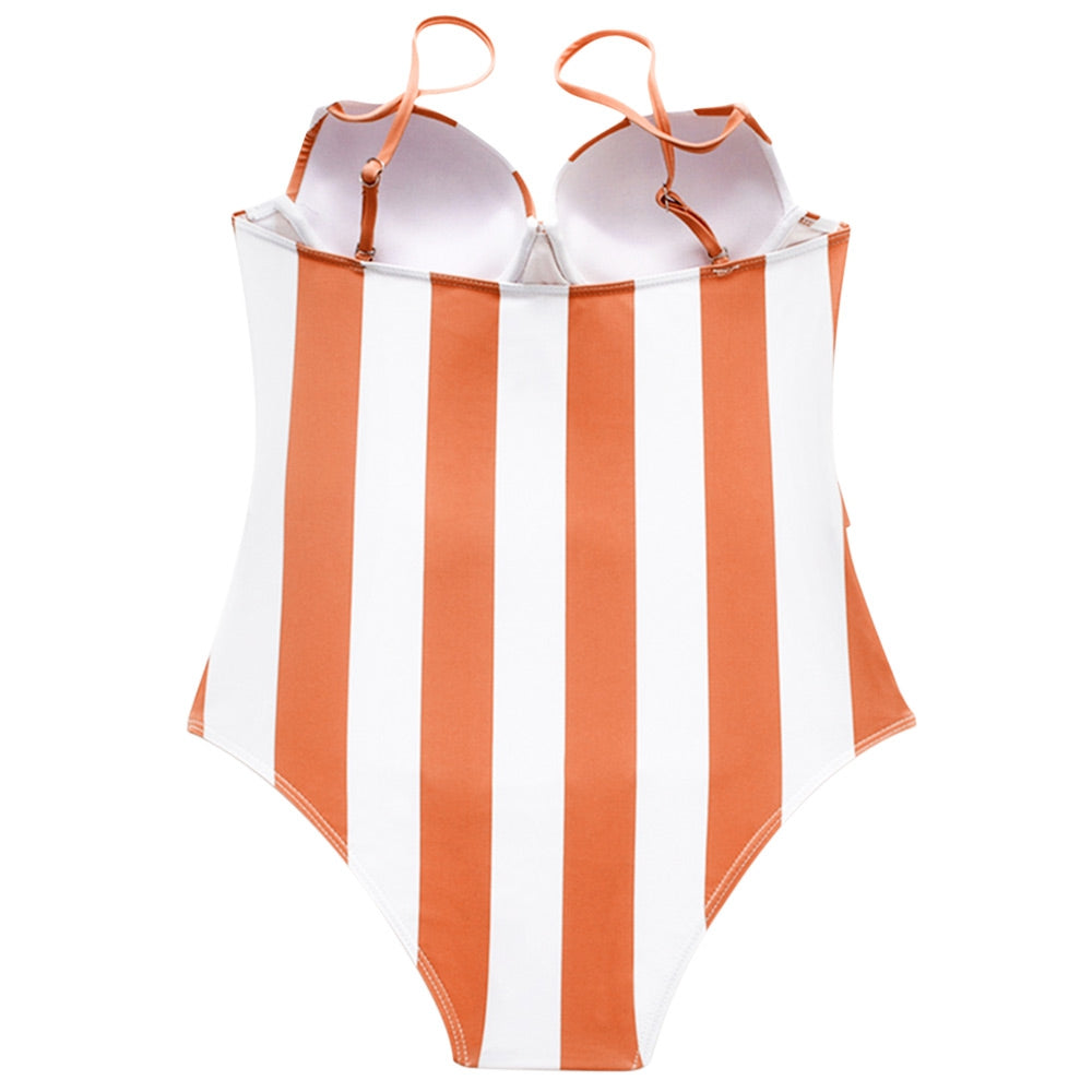 This stripe print one-piece swimsuit has a molded cups and adjustable shoulder straps which provide added support to keep you stylish and comfortable throughout all your summer activities.