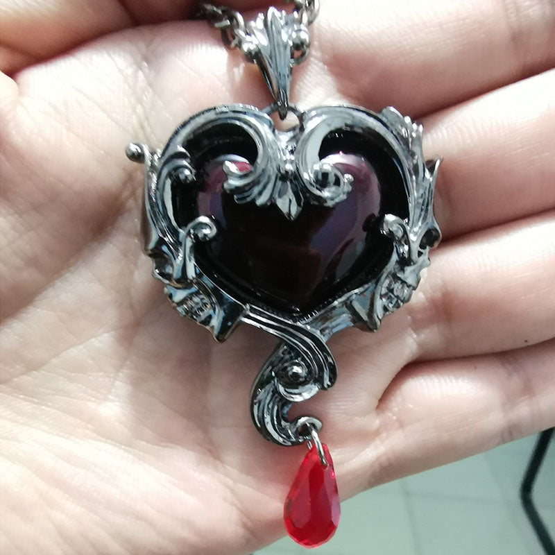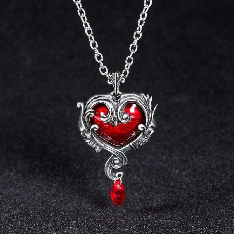 New Punk Retro Skull Red Peach Heart Necklace Pendant Women Jewelry