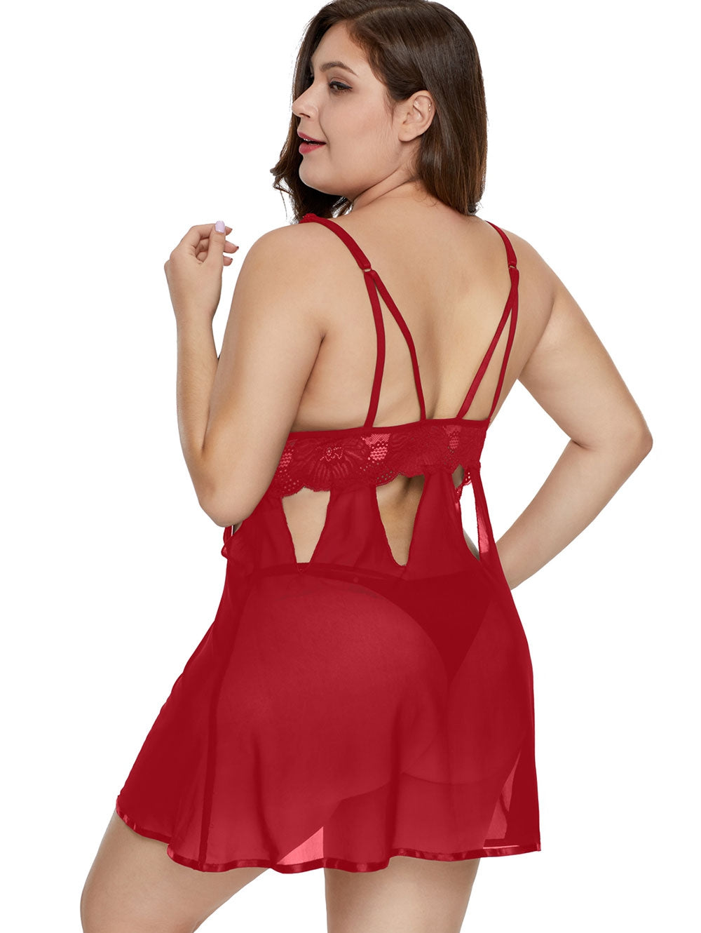 Plus Size Cut Out Lace Panel Babydoll Sexy Style