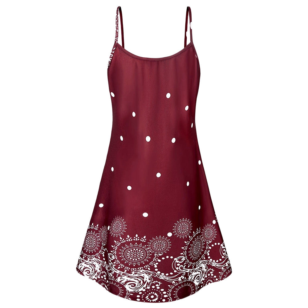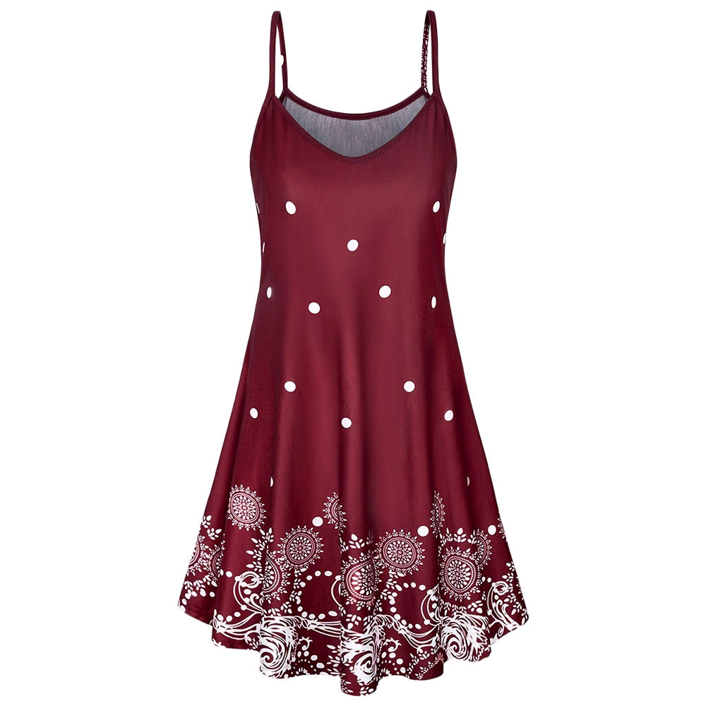 Women Dress Flare Dotted Printed Spaghetti Strap