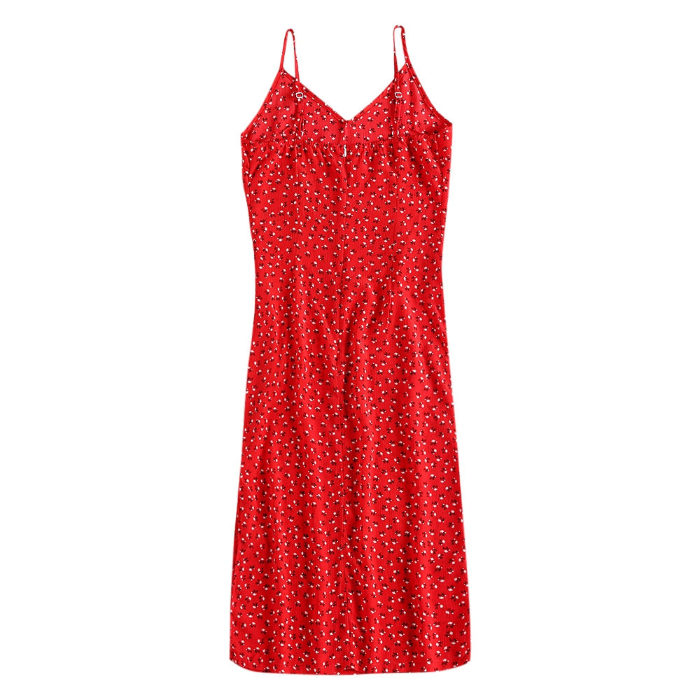 Spaghetti Strap Floral Print High Slit Sheath Women Chiffon Dress