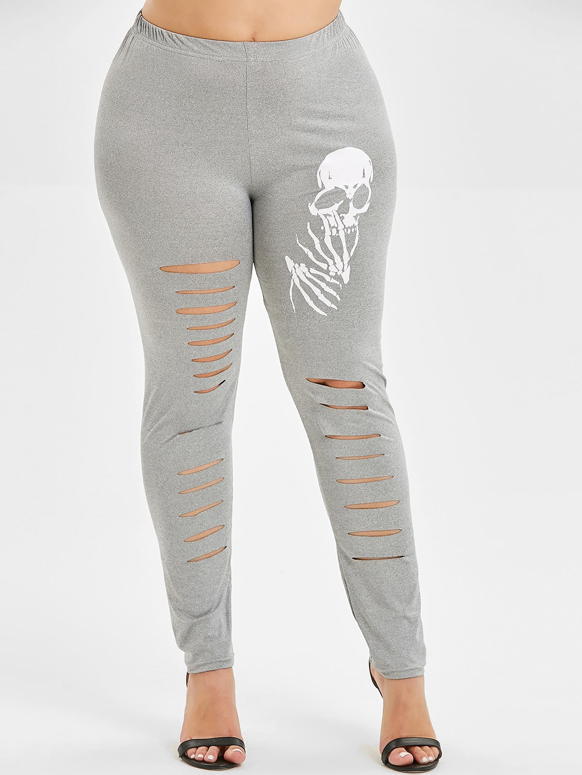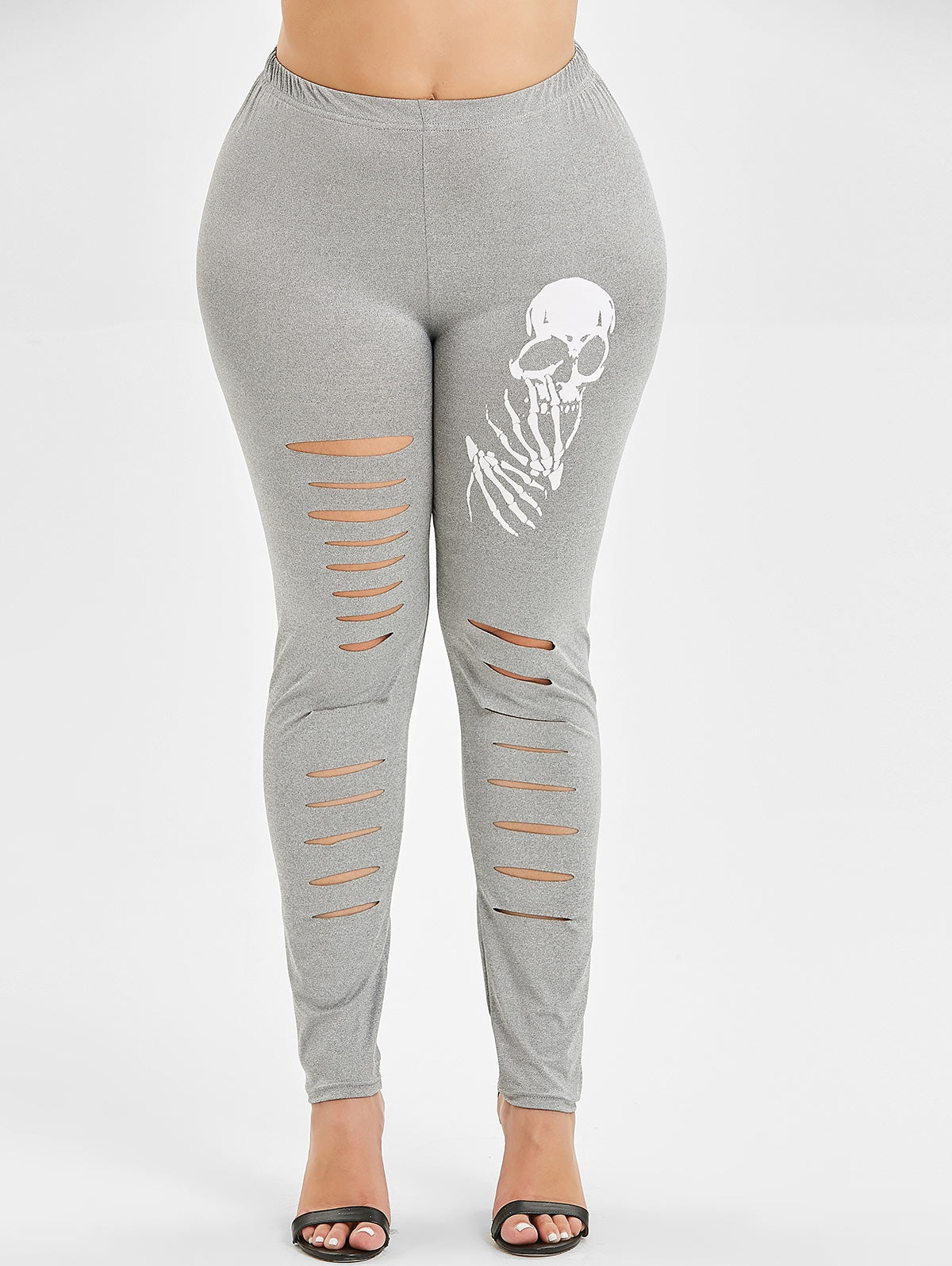 Fashion leggings in ripped design feature skull print, a flattering high waist, and a skinny silhouette, for a conspicuous look, suitable for wearing in daily leisure life.