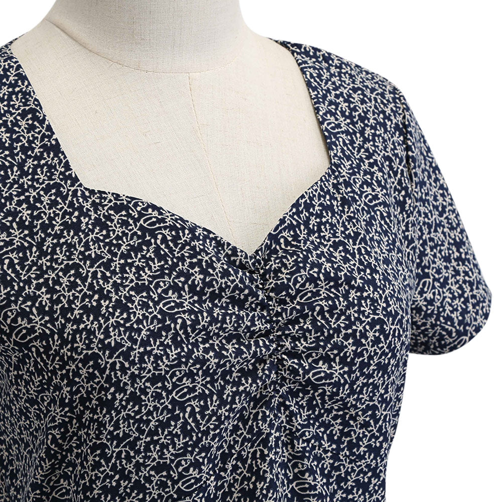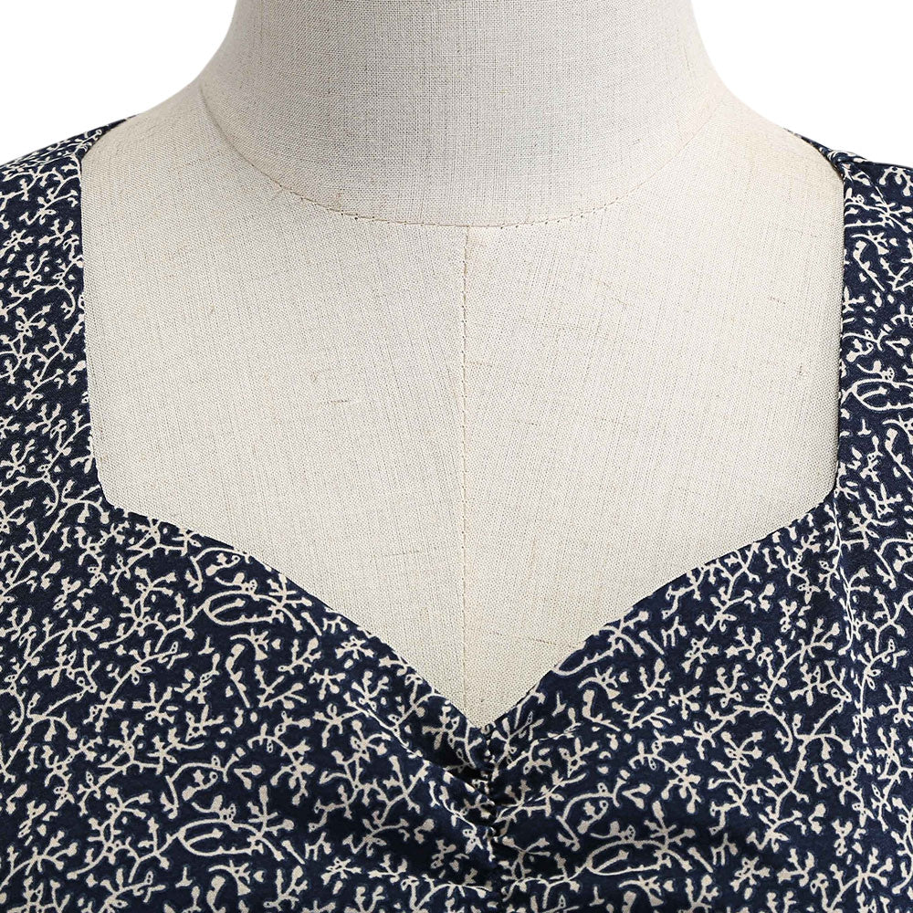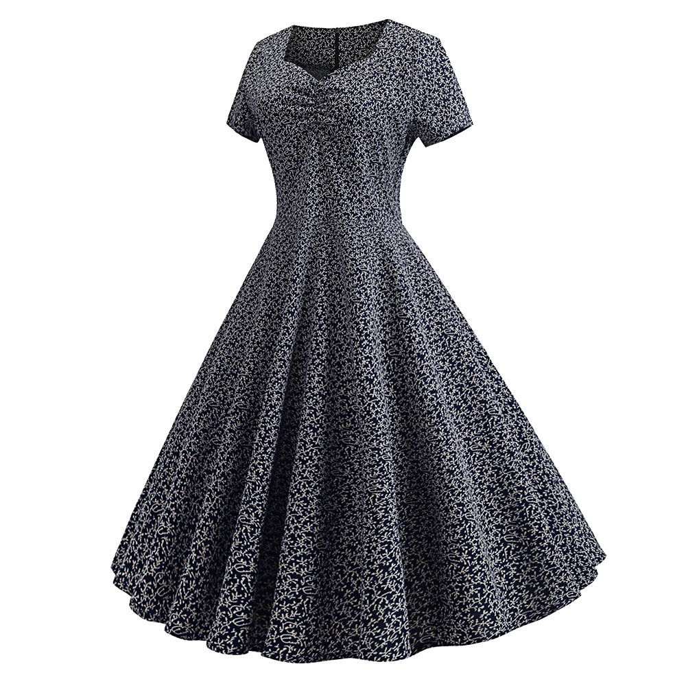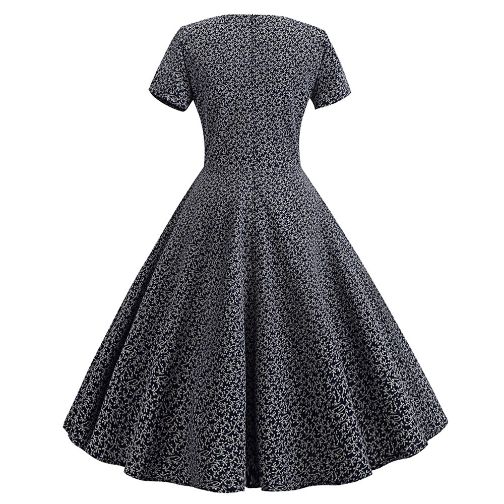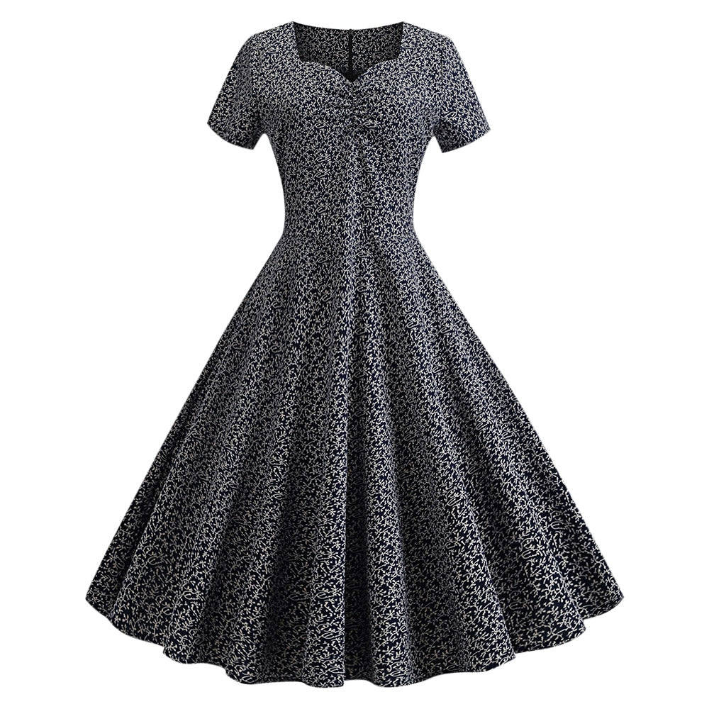 Sweetheart Neck Short Sleeve Floral Print A-line Women Vintage Dress