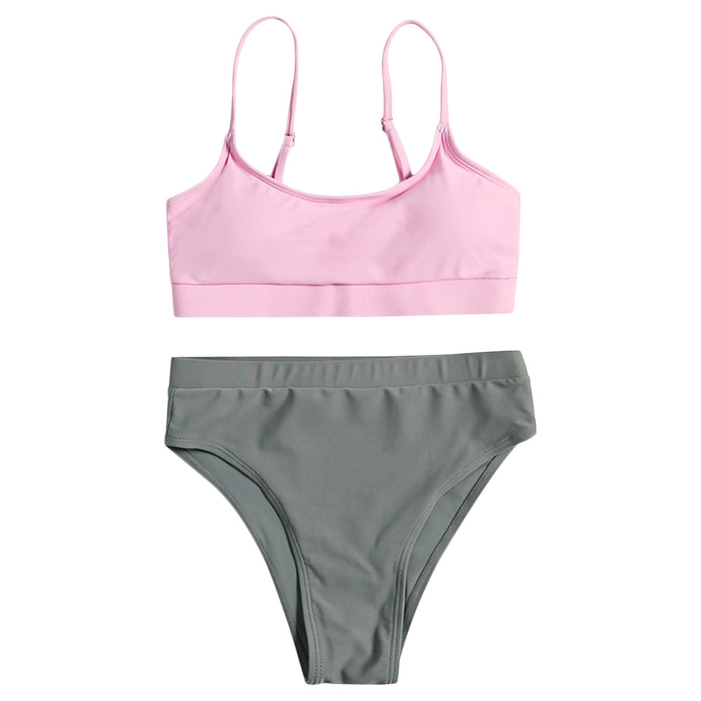 Spaghetti Strap Padded Wireless High Waist Women Sports Bikini Set