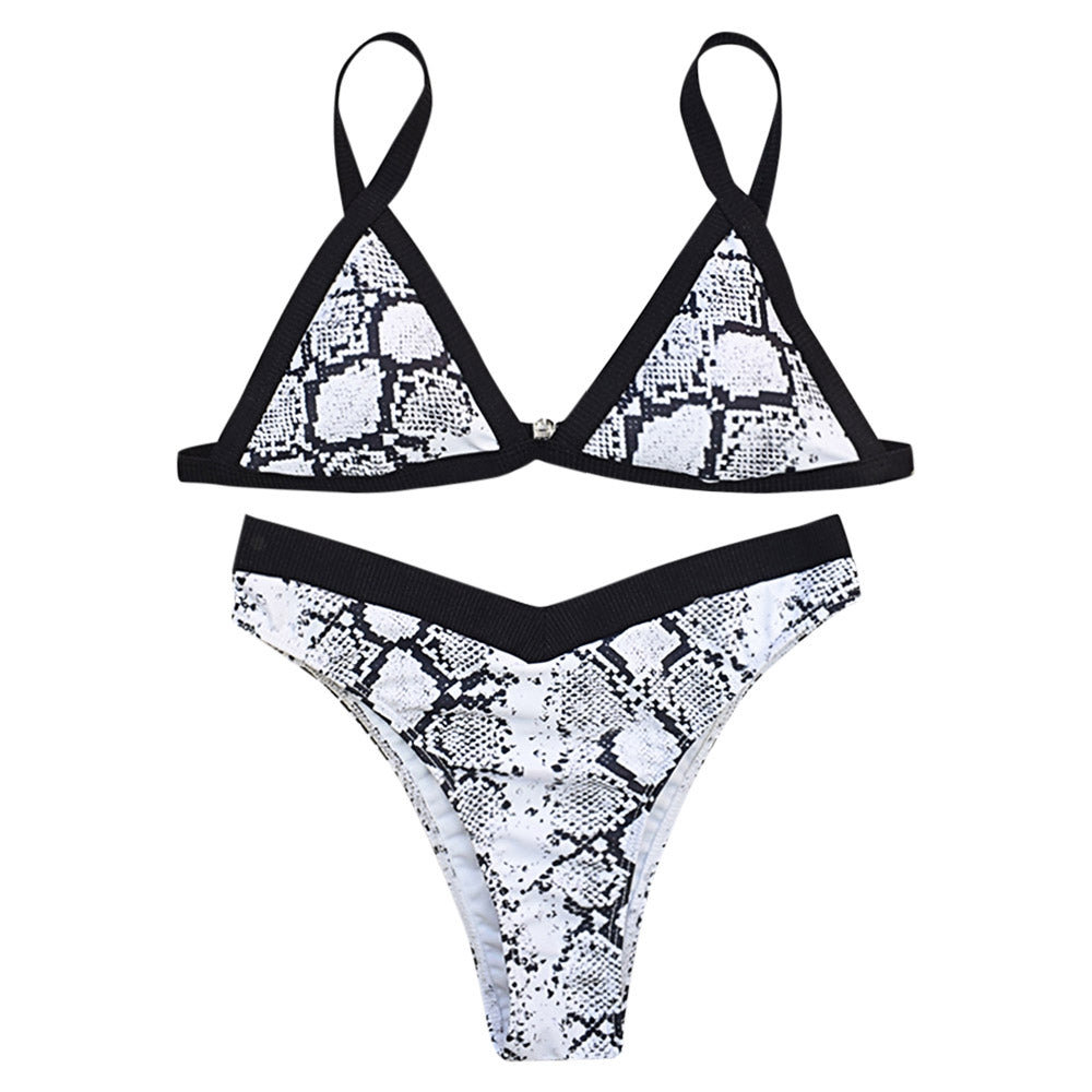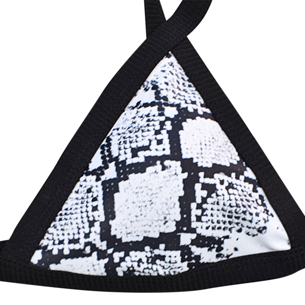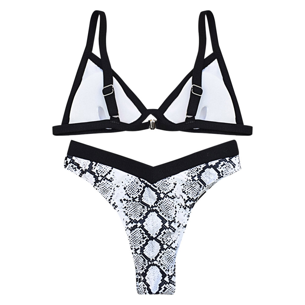 Spaghetti Strap Snake Print Padded Mid Waist Women Bikini Set