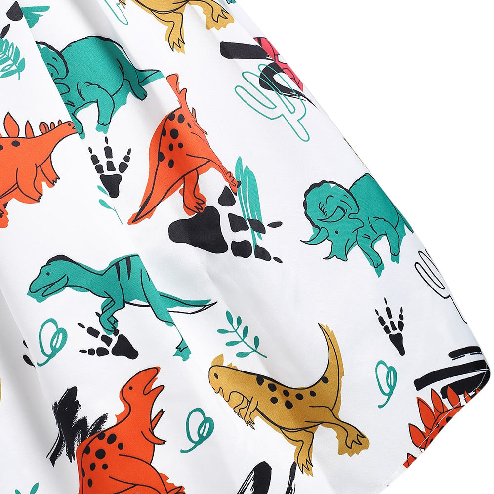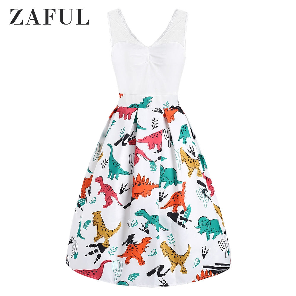 Dinosaur Print Lace Panel Vintage Dress