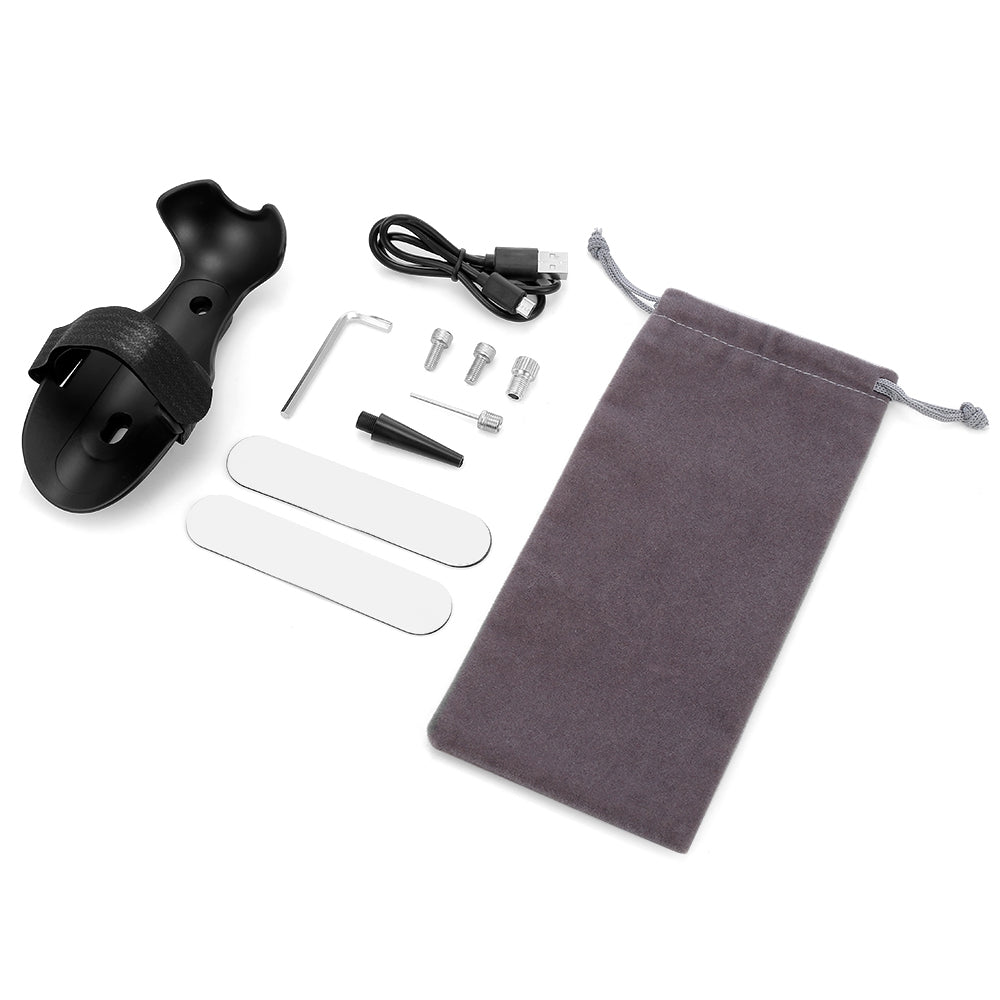Package Contents: 1 x Inflator, 1 x Air Tube, 1 x USB Cable, 1 x Balloon Converter, 1 x Valve Converter, 1 x Ball Converter, 1 x Bike Mount, 1 x Screwdriver, 2 x Screw, 2 x Non-slip Mat, 1 x Hook and Loop Fastener, 1 x Drawstring Bag