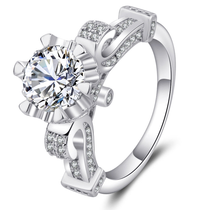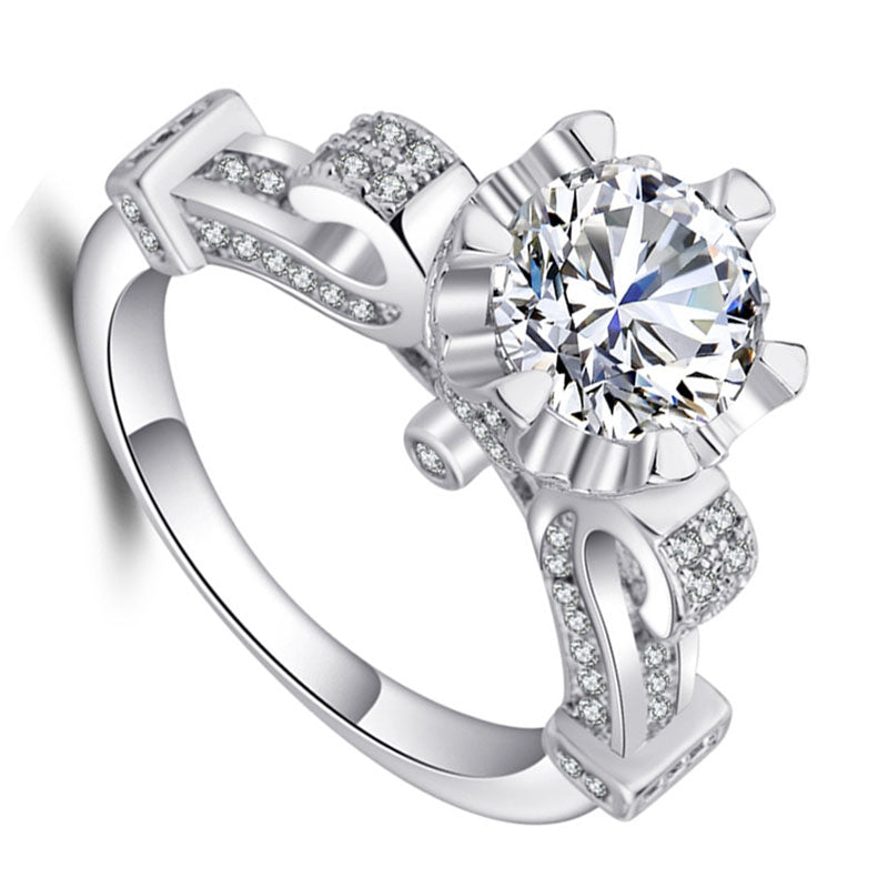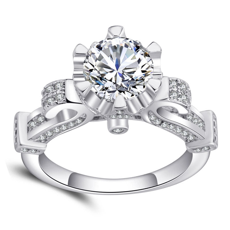 Fashion Lady 18k Rose Gold White Topaz Gemstone Engagement Ring