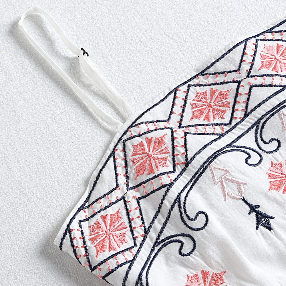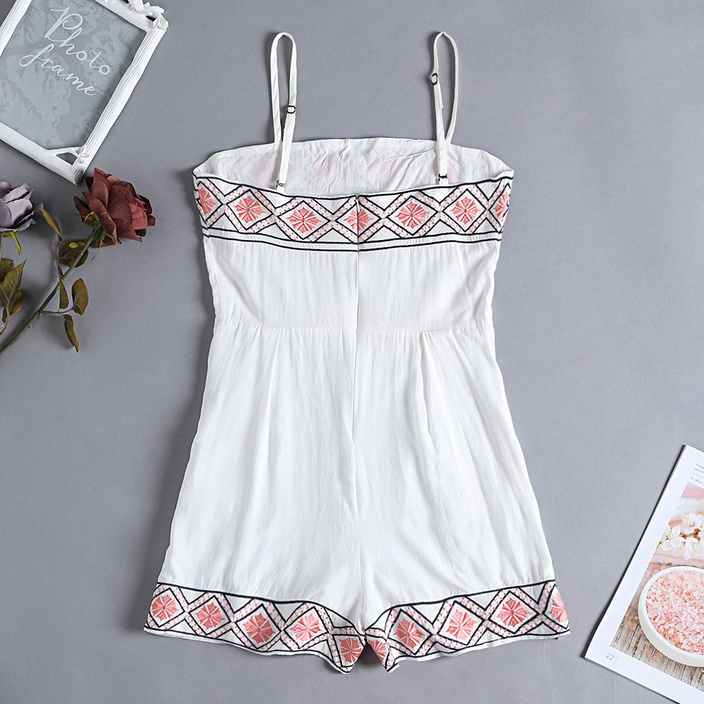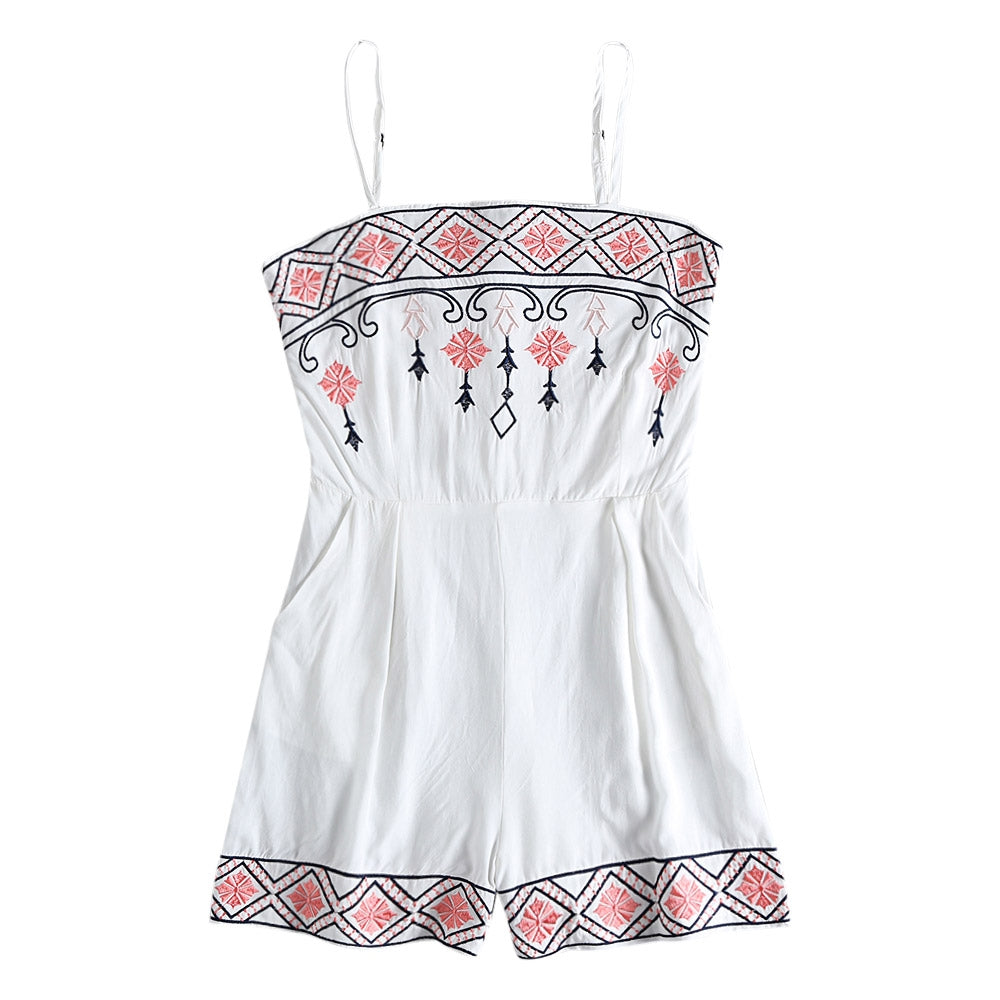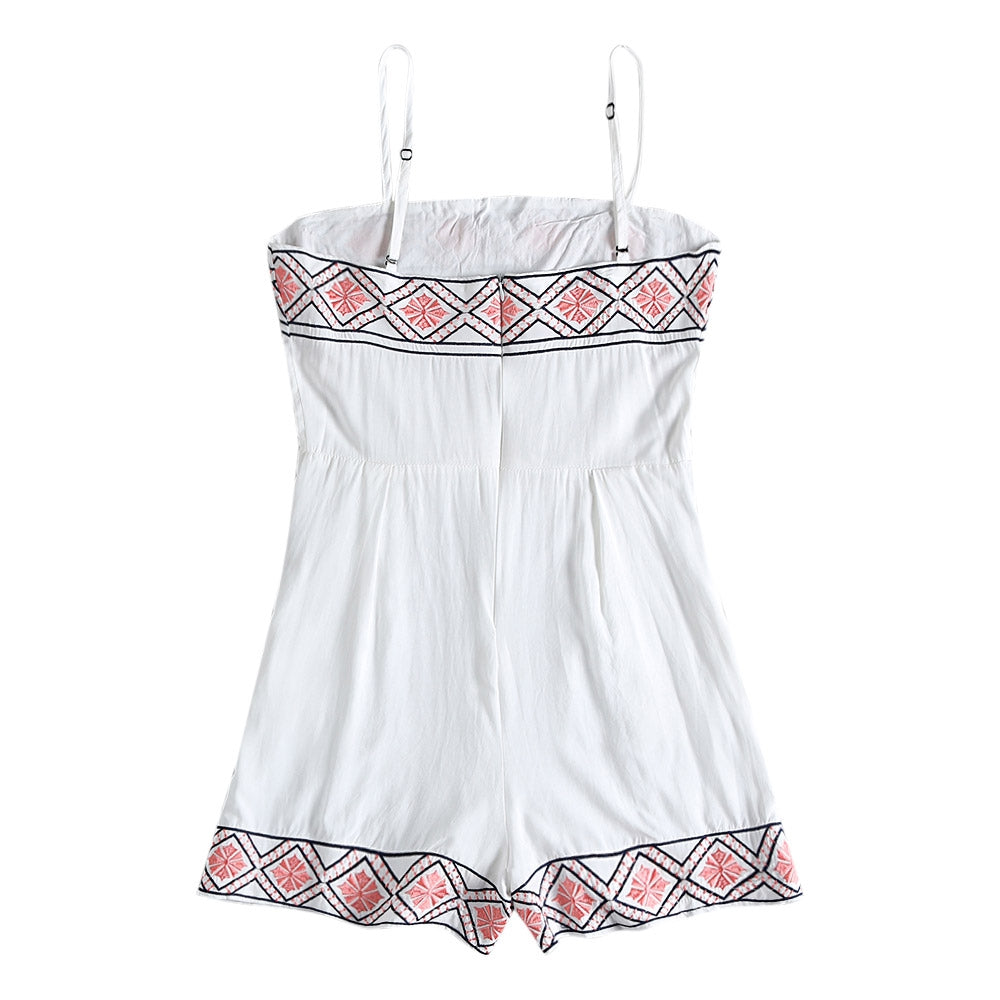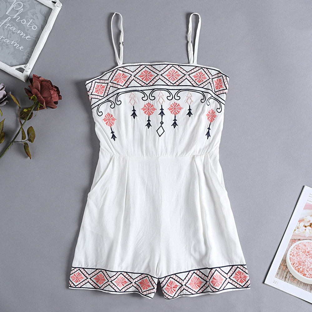 Sexy Spaghetti Strap Women Rompers Side Pocket Embroidered Jumpsuit