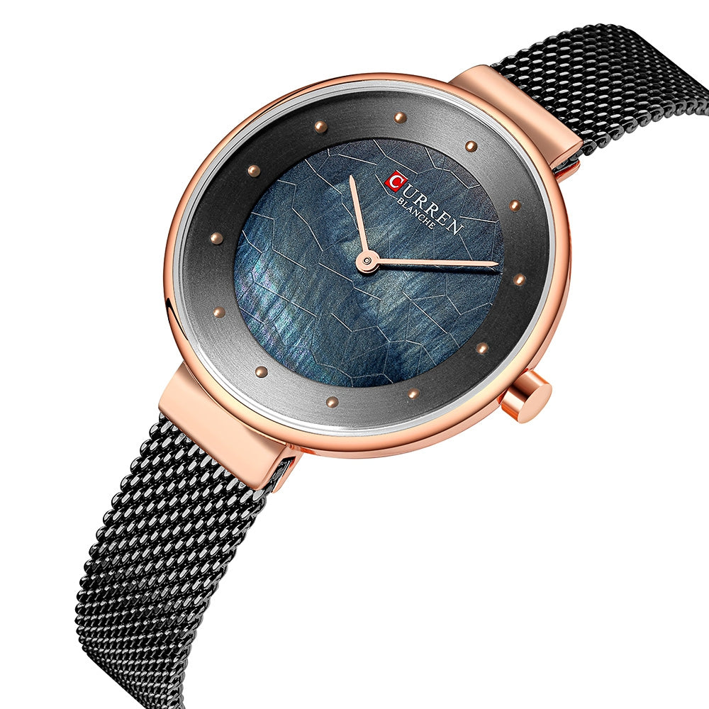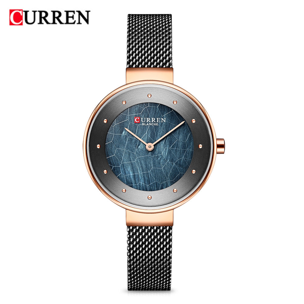 CURREN BLANCHE 9032 Women Quartz Watch Mesh Stainless Steel Band Fashion Wristwatch