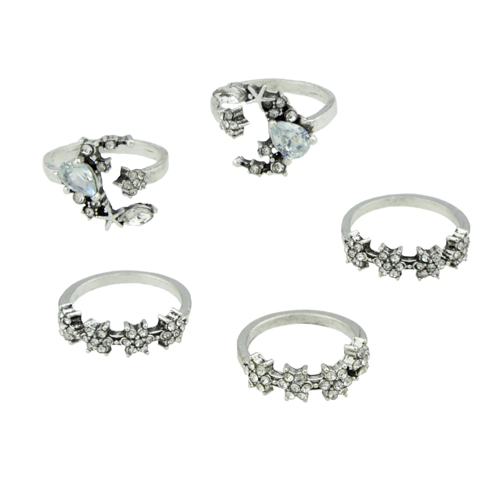 Silver Color With Rhinestone Geometric Rings 5PCS/Set