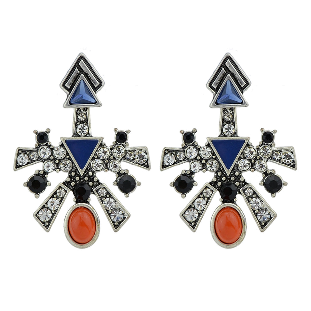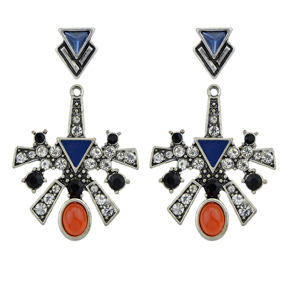 Antique Silver Color with Rhinestone Red Blue Stone Stud Earrings