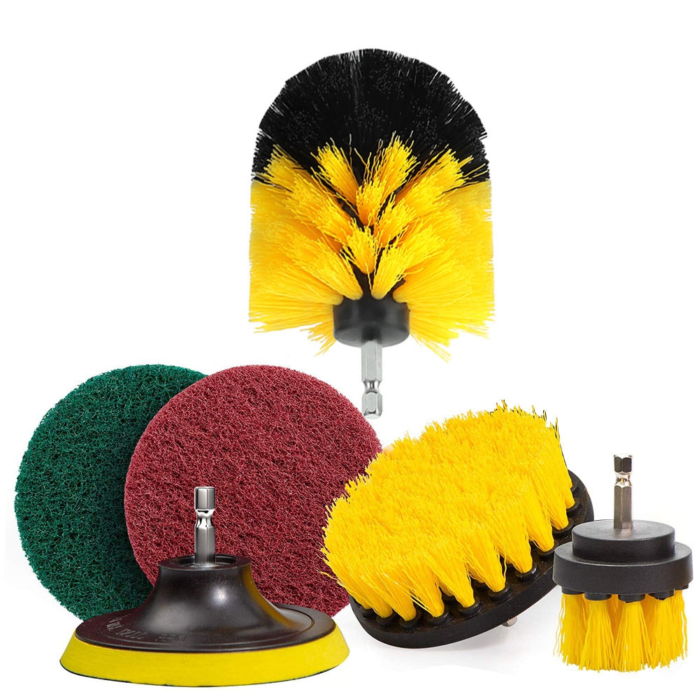- Includes 3 shapes of drill brushes, 2 different stiffnesses scouring pads and 1 backing pad, total 6pcs.