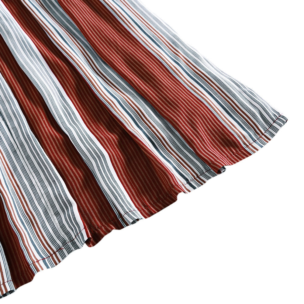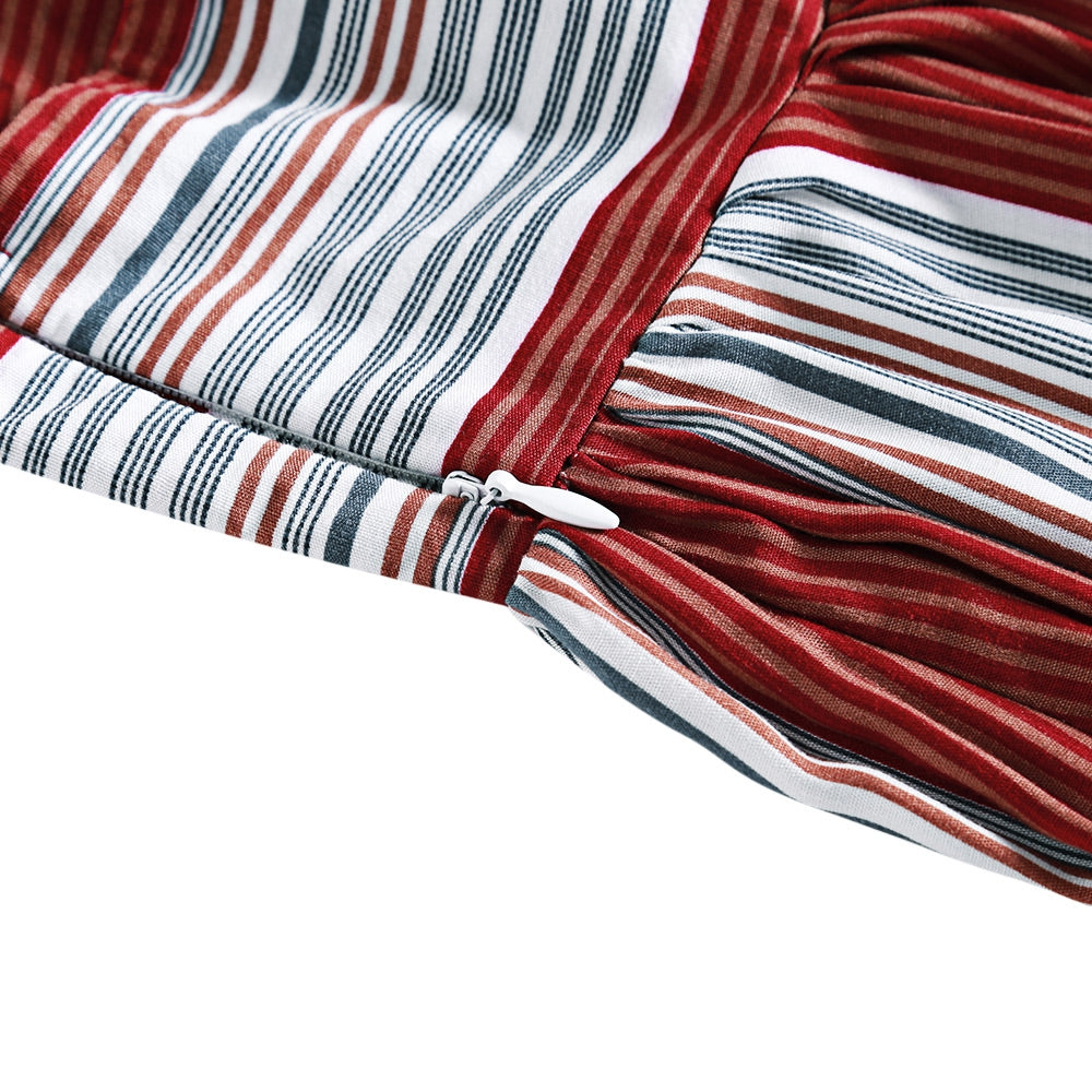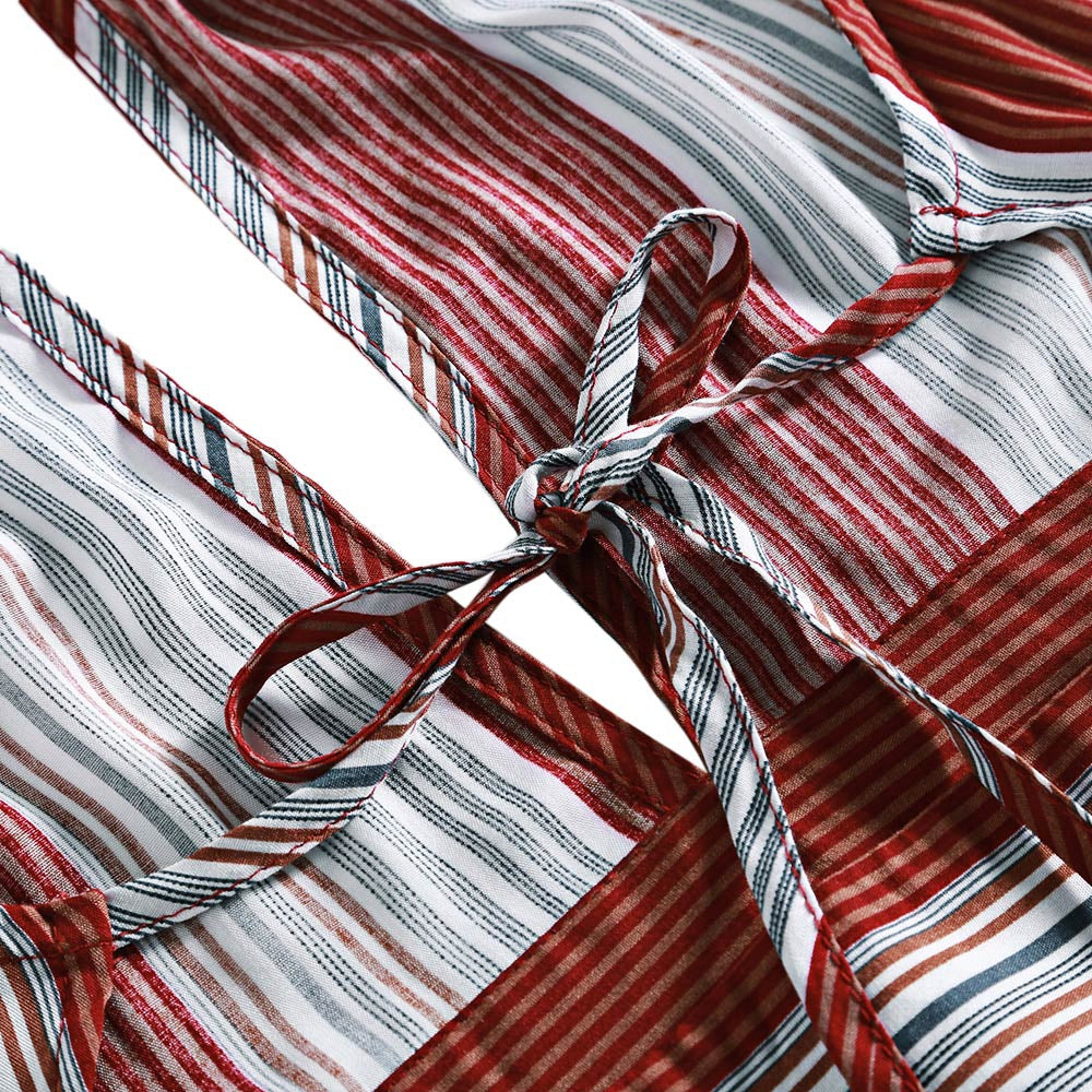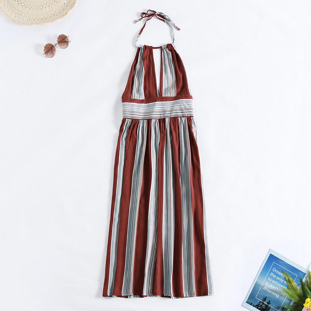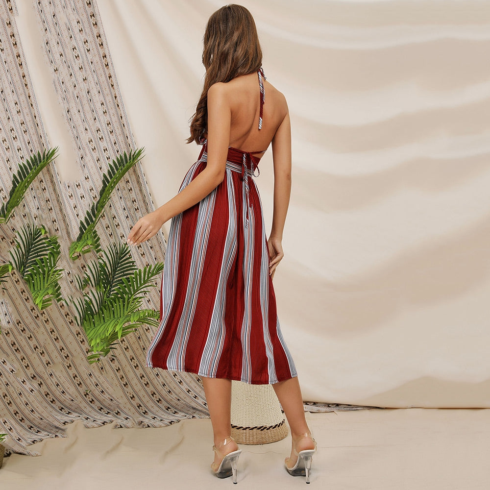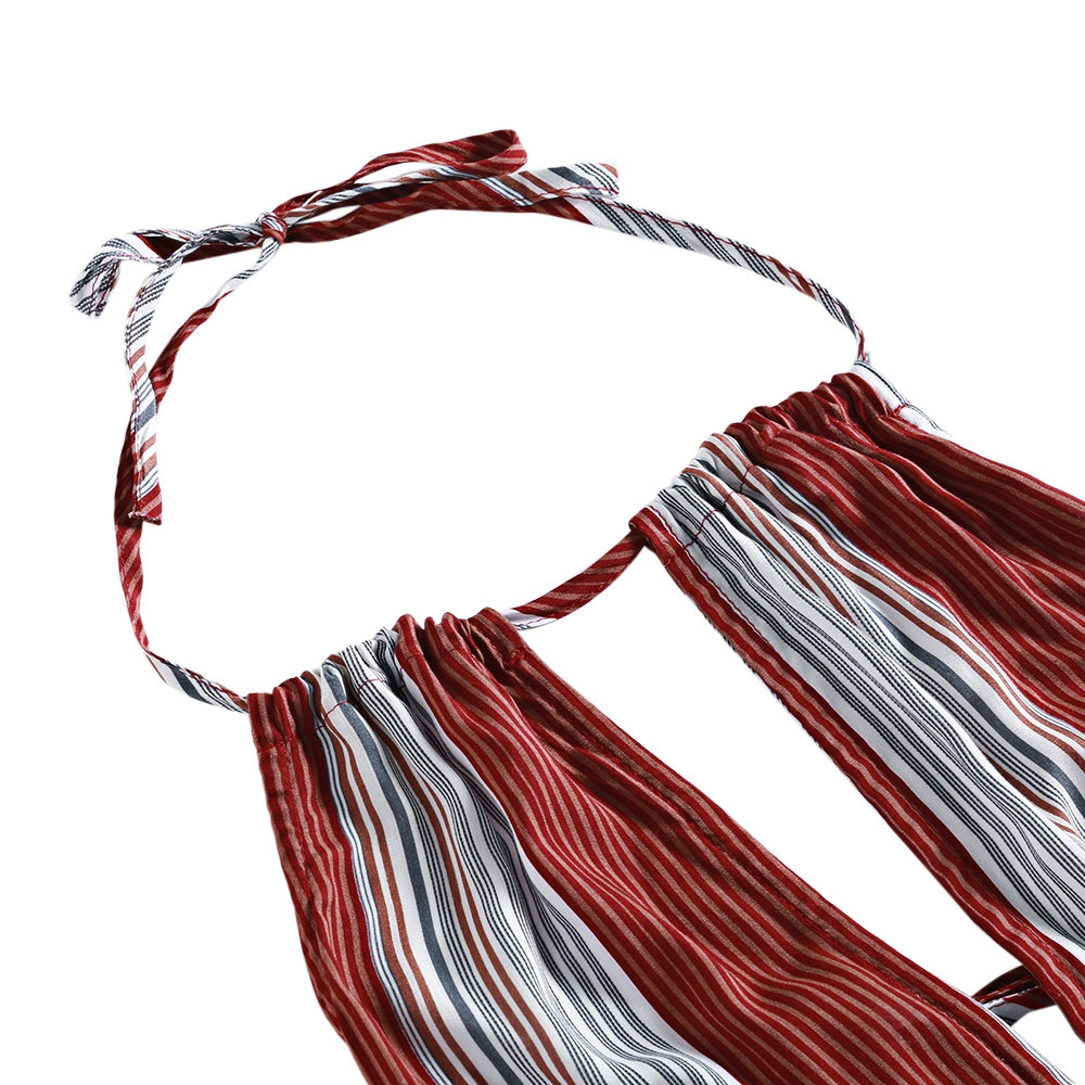Sexy Halter Striped Backless Dress Lace-up Cut Out High Waist