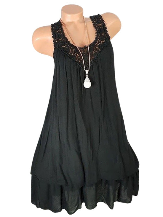 Plus Size Crochet Yoke Sleeveless Dress for Women