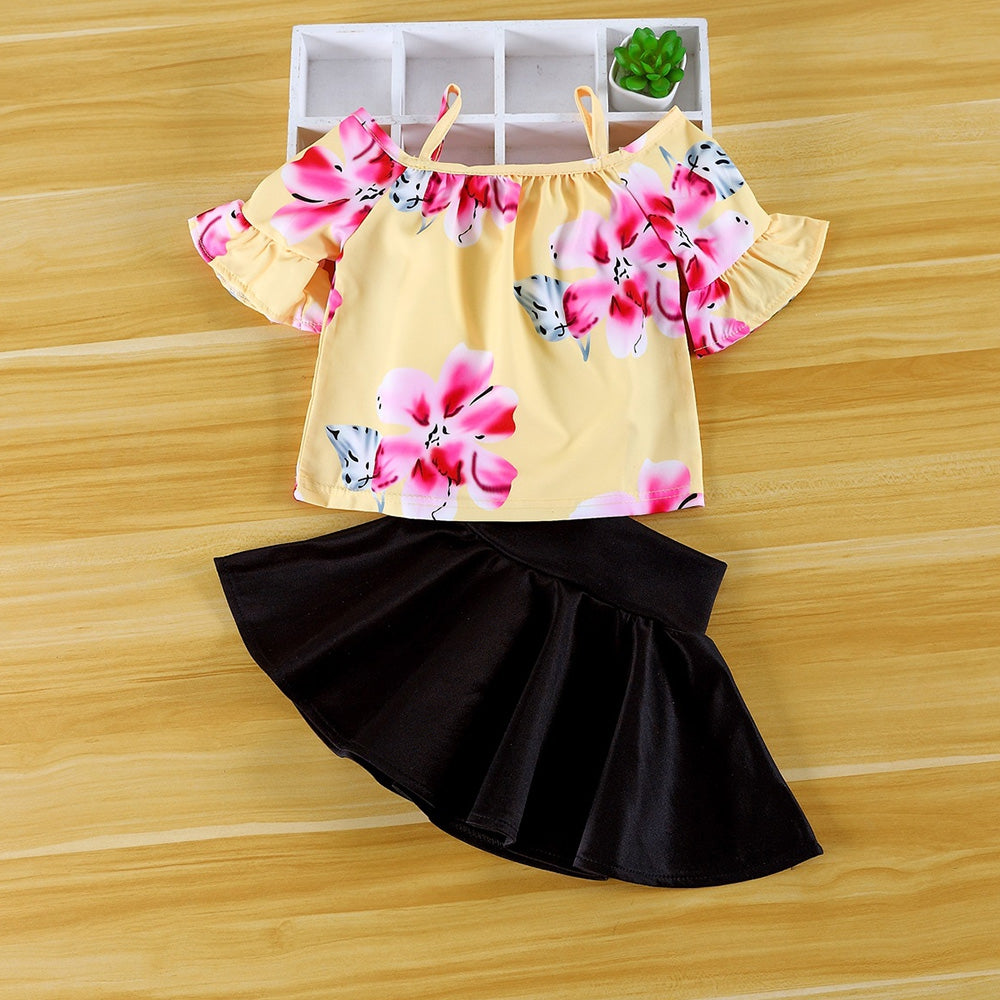 1223 Girls Stretch Printed Top Fold Princess Skirt Set