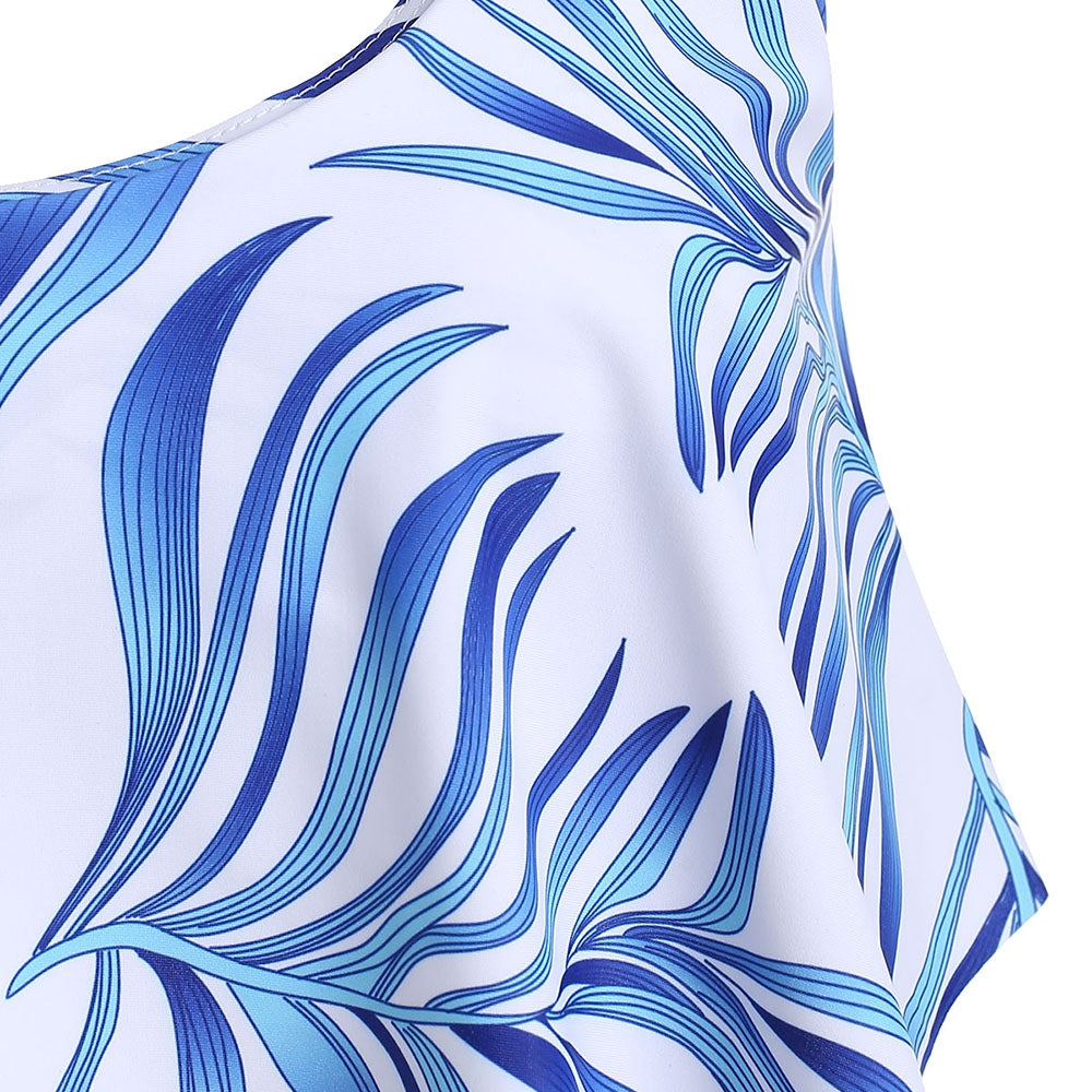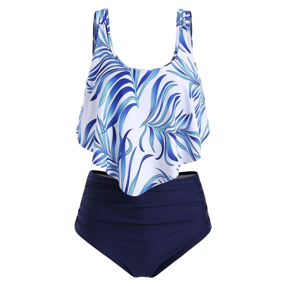 Leaf Print Flounce High Waisted Tankini Swimsuit for Summer