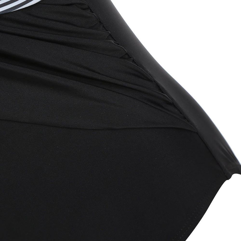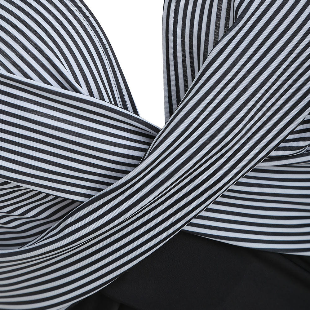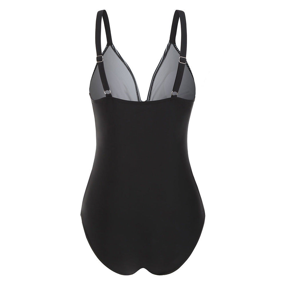 Be the beach goddess of your dreams with this one-piece swimsuit. It has adjustable shoulder straps for holding up, while leaving the back exposed to get an adequate suntan. The front drops into a plunging style to flaunt your charming figure. And the bust area has a striped twisted design which is unique and figure-flattering.