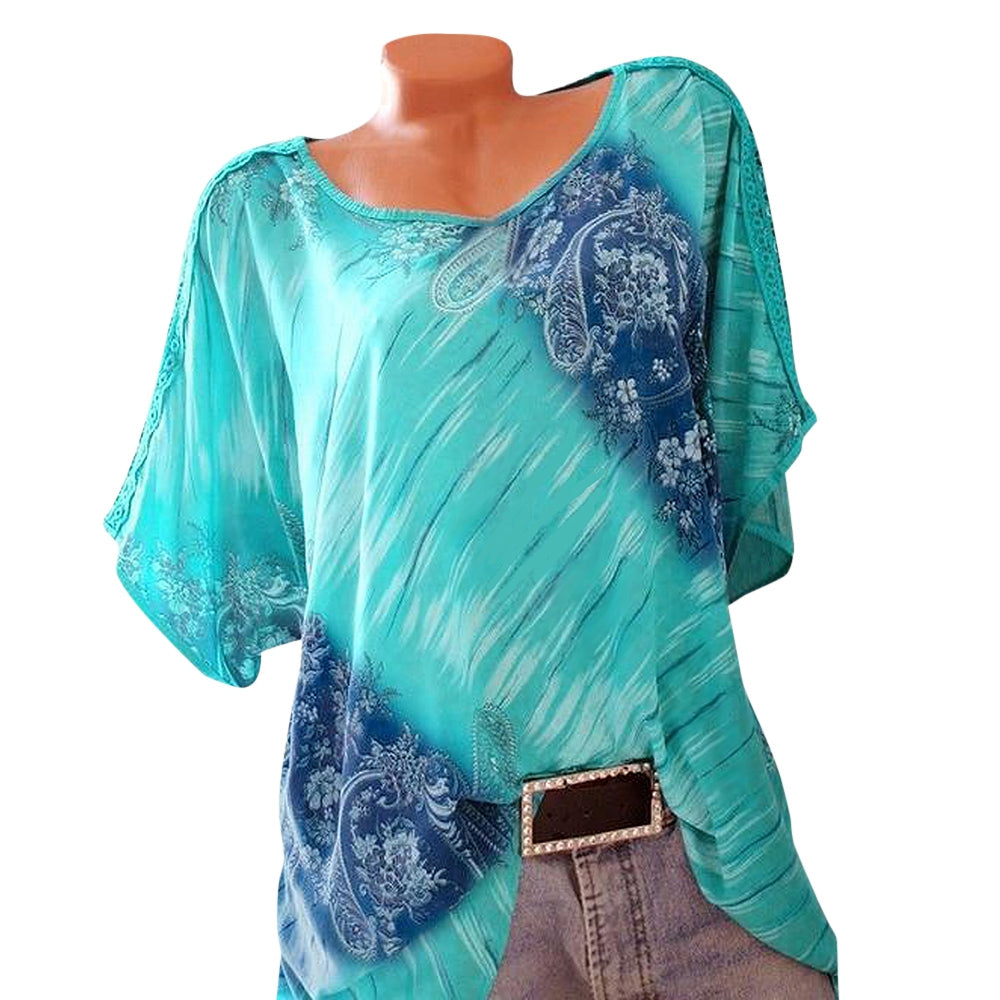 Floral Printed Crochet Panel Plus Size Blouse