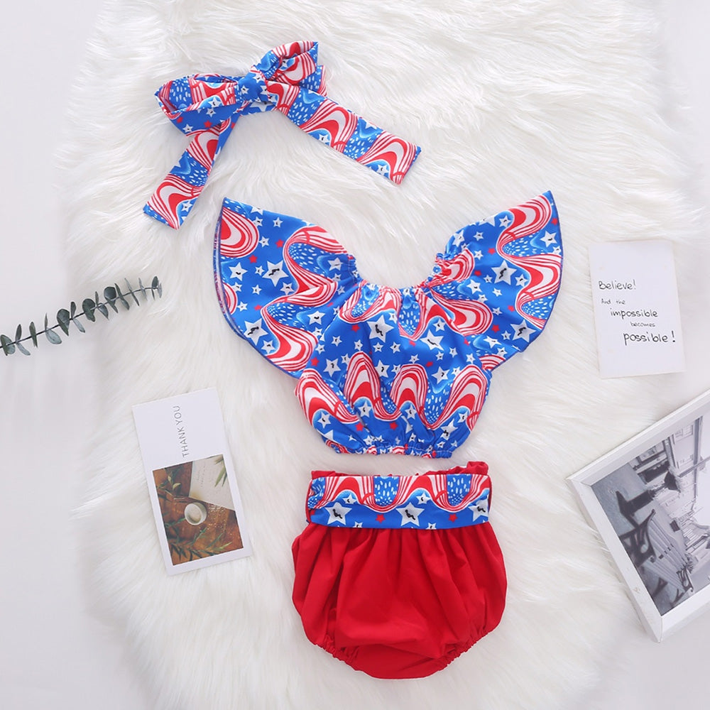 1291 Girls Polyester Bohemian Top + Shorts + Headband Set