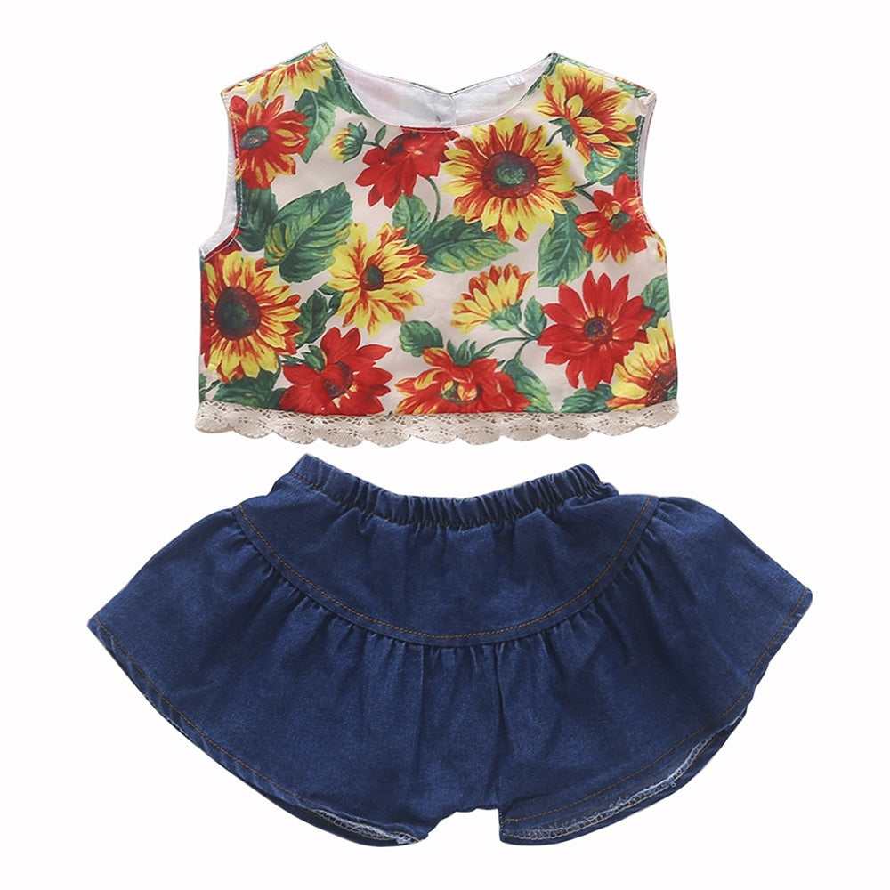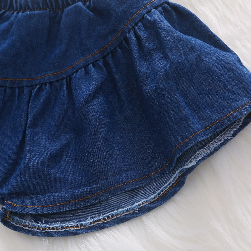 1282 Girls Cotton Sunflower Printed Lace Vest + Solid Color Loose Shorts